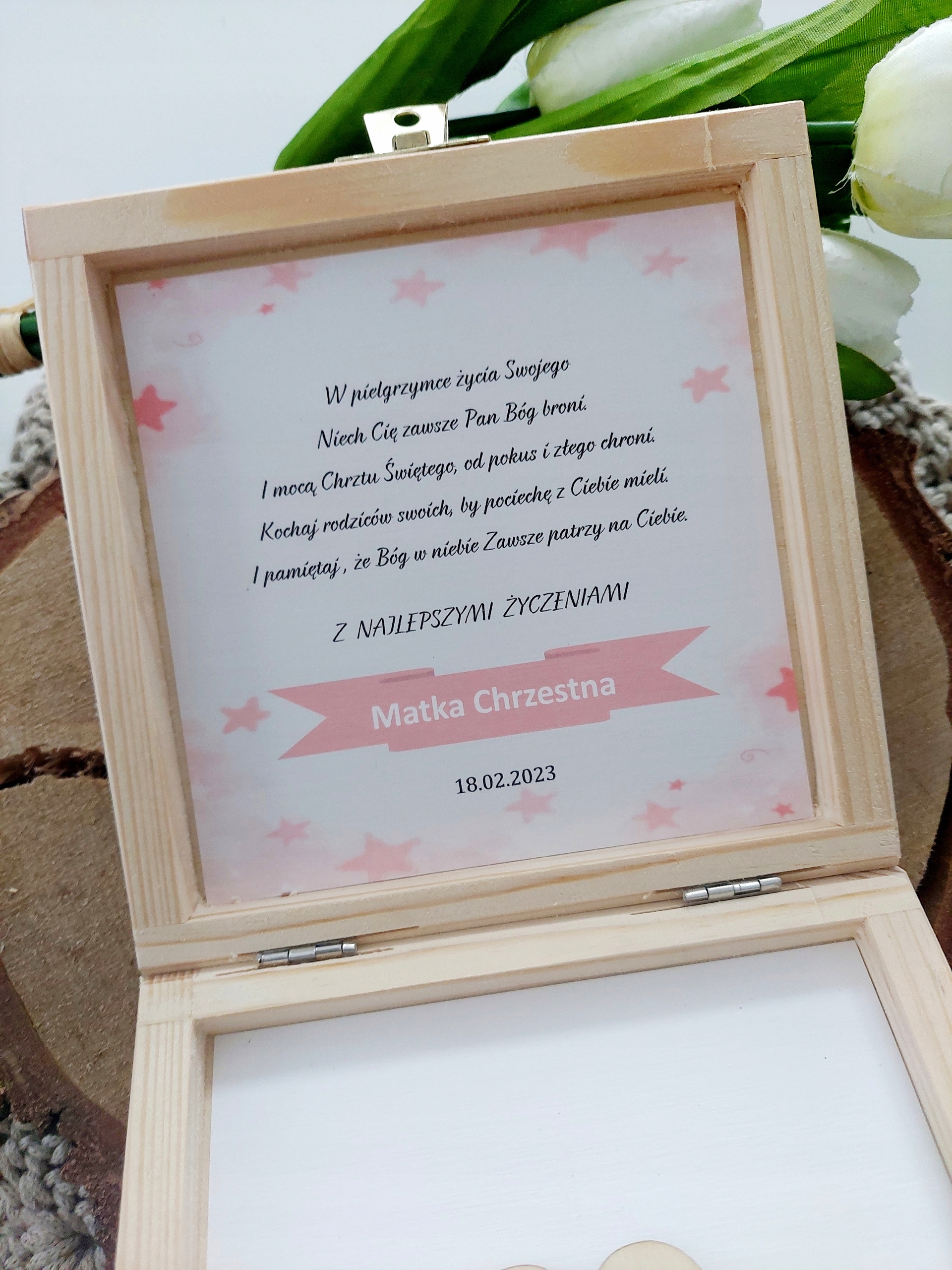 Дерев’яну коробку з персональними побажаннями та місцем для готівки чи іншого подарунка.