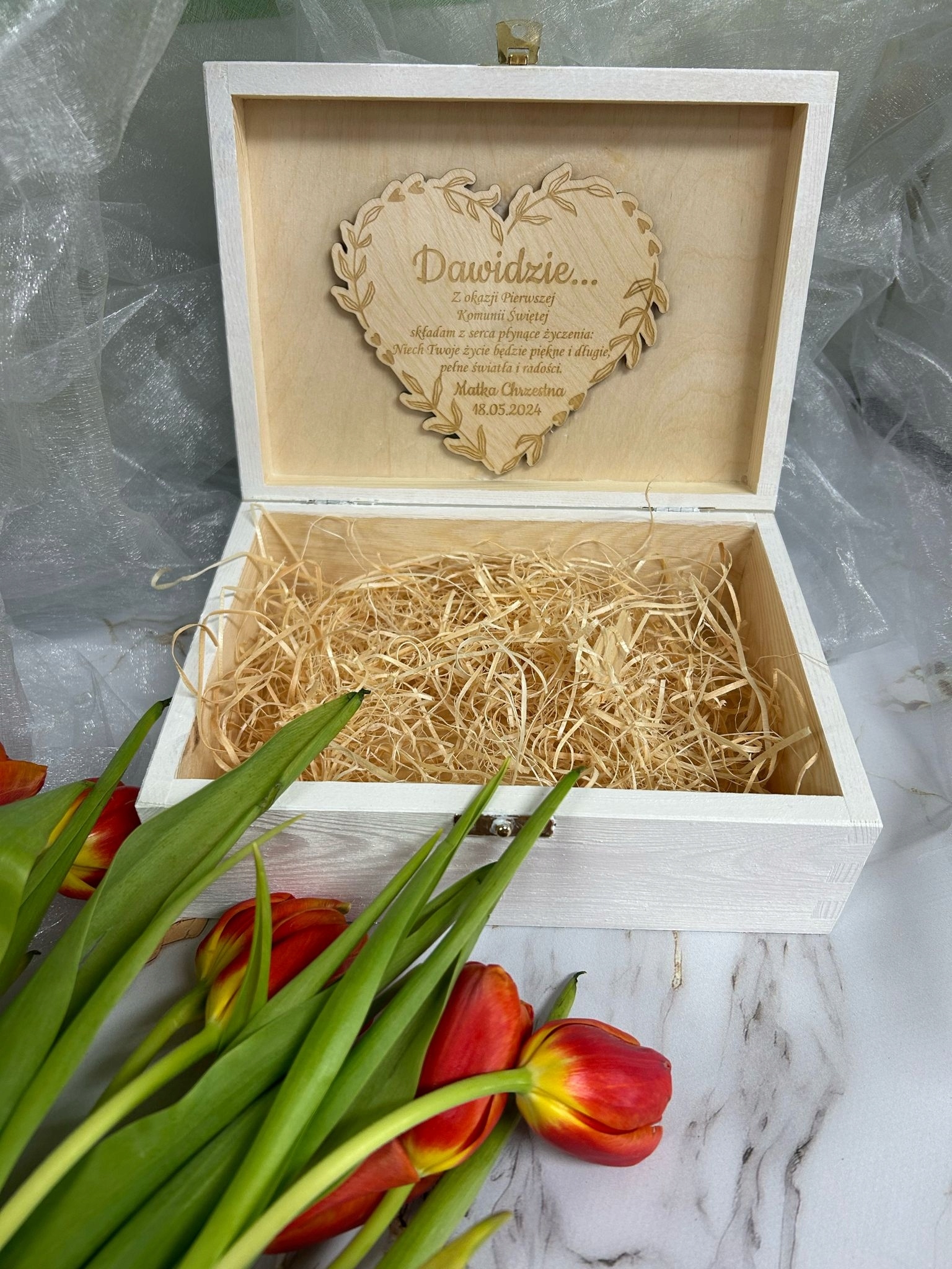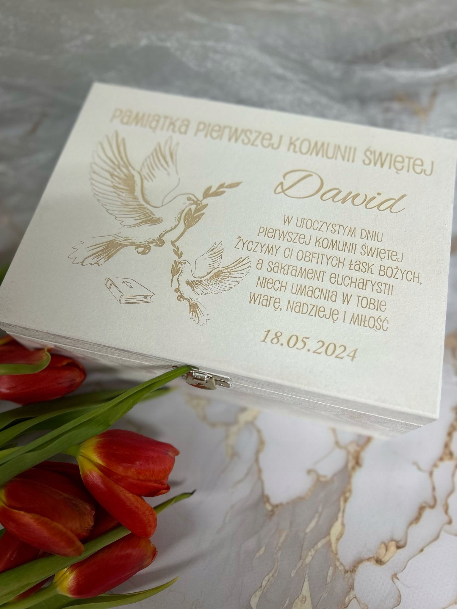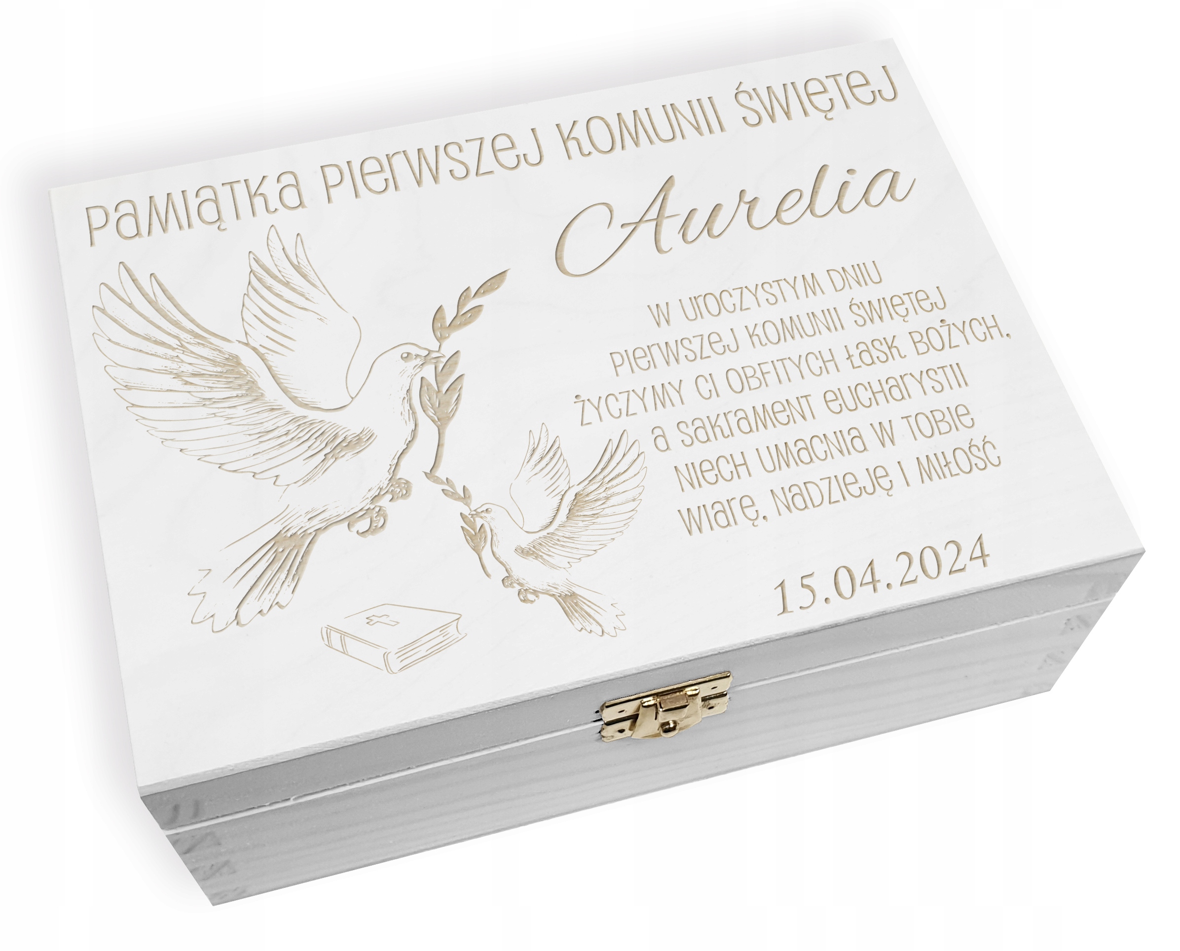 Специфікація продукту – Елегантна скринька для причастя з гравіюванням