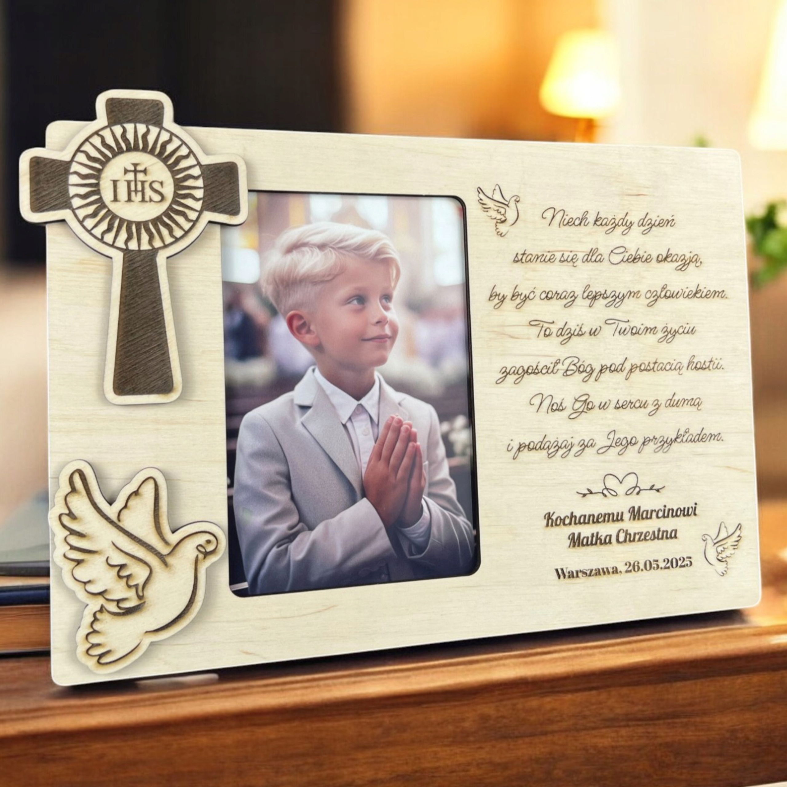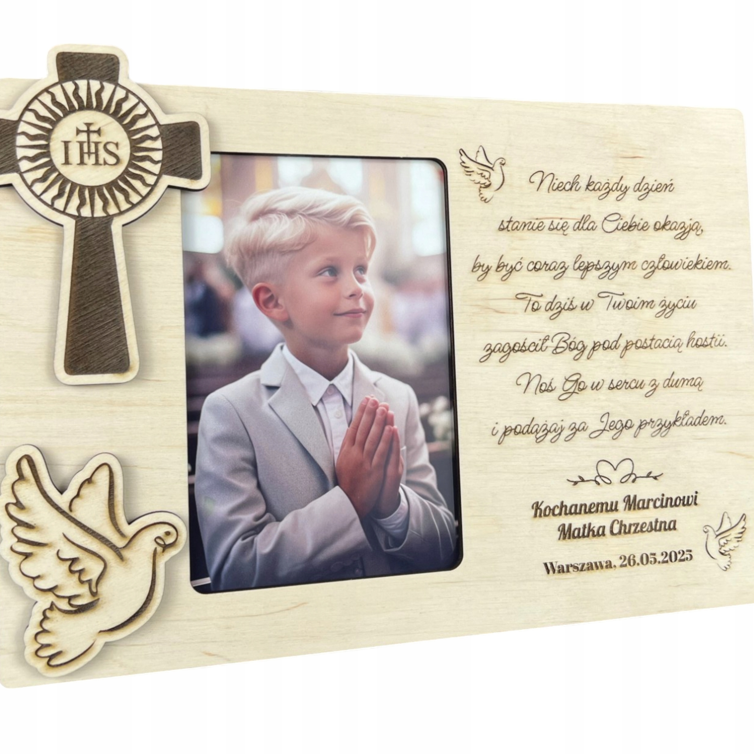 Дайте неповторний та унікальний подарунок з нагоди першого Святого Причастя ! Наш персоналізований кадр з гравюром - чудовий сувенір цього важливого дня.