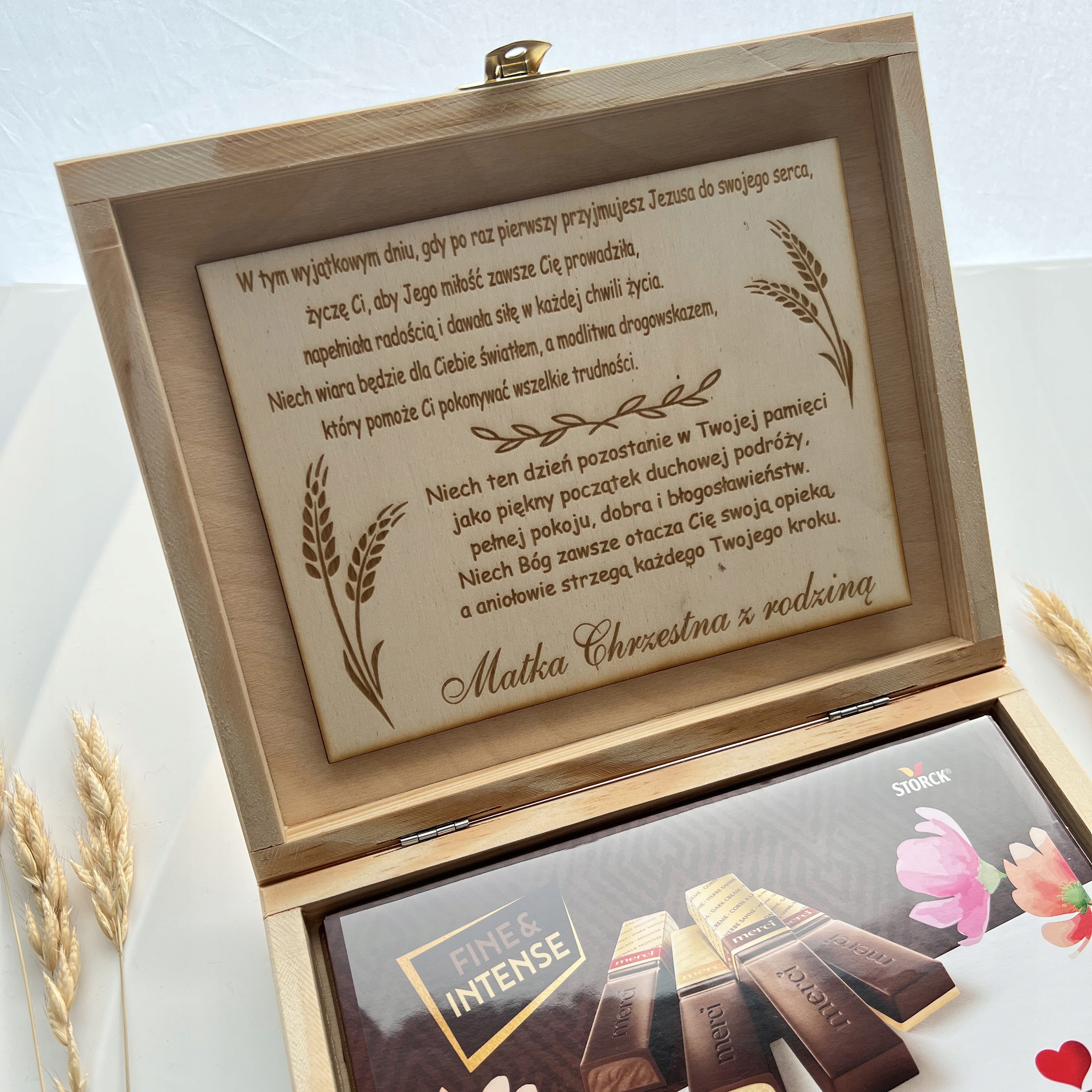Просматривая «Сувенир первого ящика Merci Merci Merci с гравировкой для причастия», вы можете быть уверены, что данный товар из каталога «Коробки» будет доставлен из Польши и проверен на целостность. В цене товара, указанной на сайте, учтена доставка из Польши. Внимание!!! Товары для Евросоюза, согласно законодательству стран Евросоюза, могут отличаться упаковкой или наполнением.