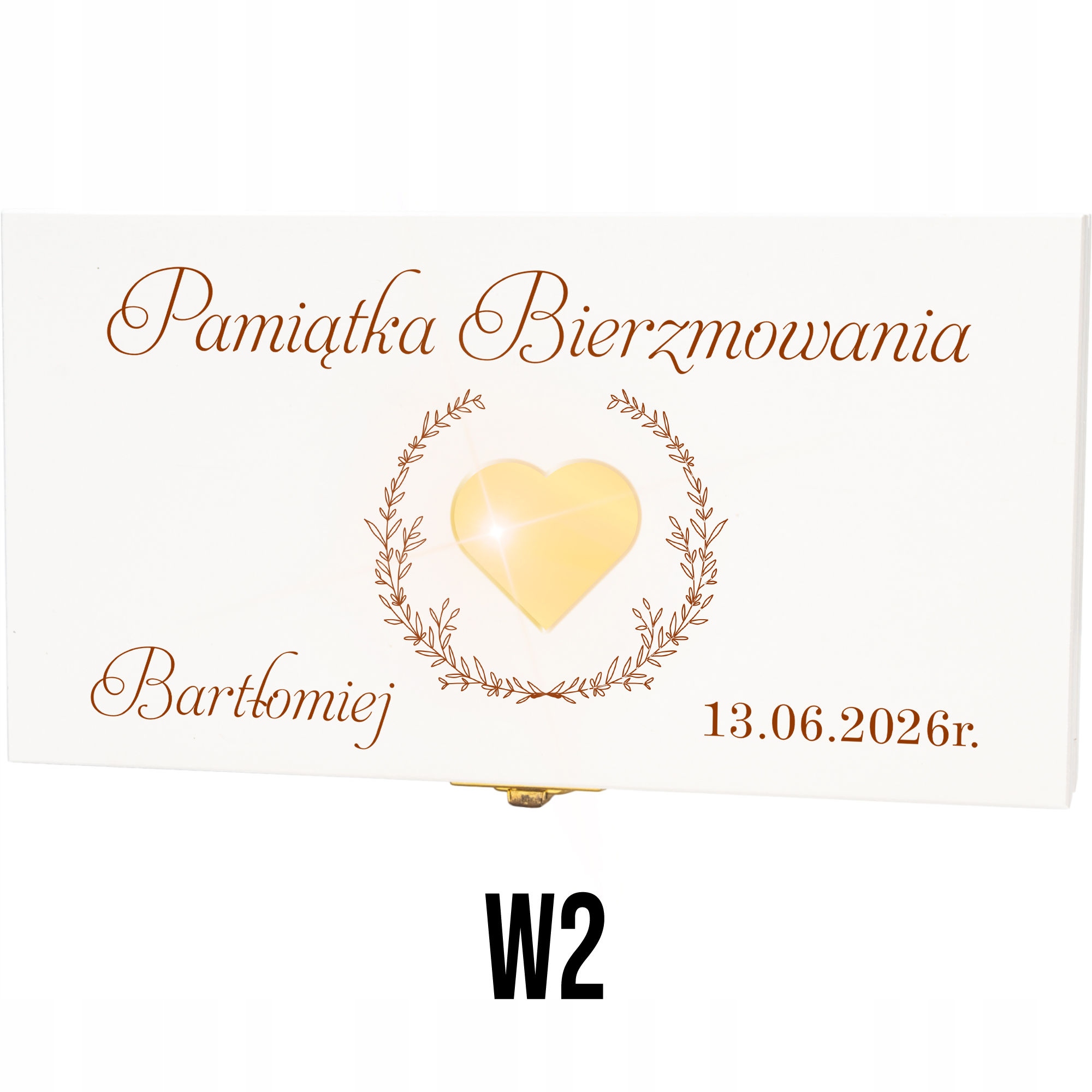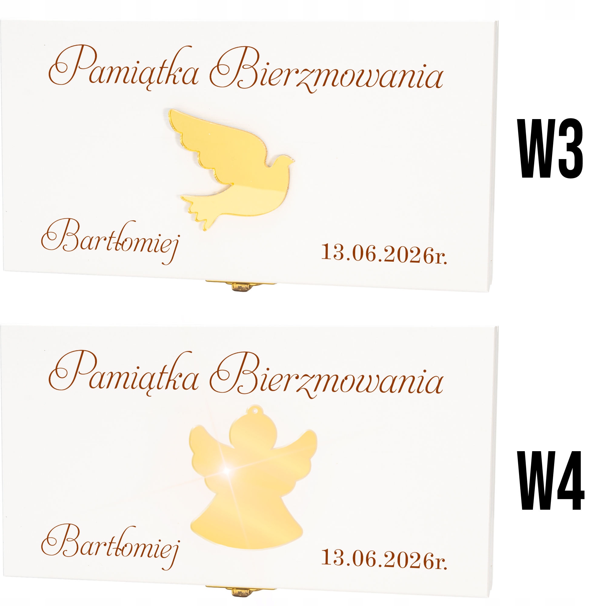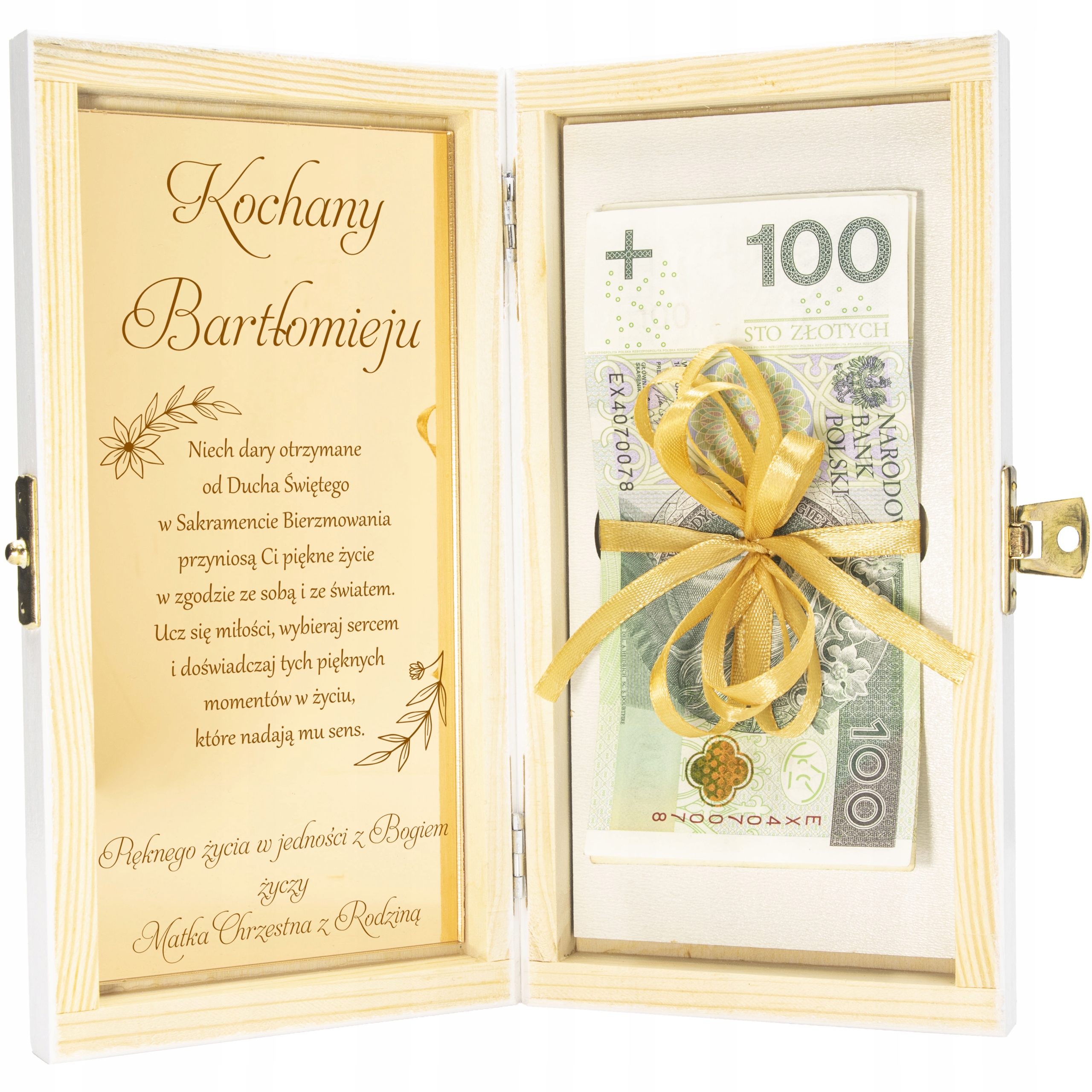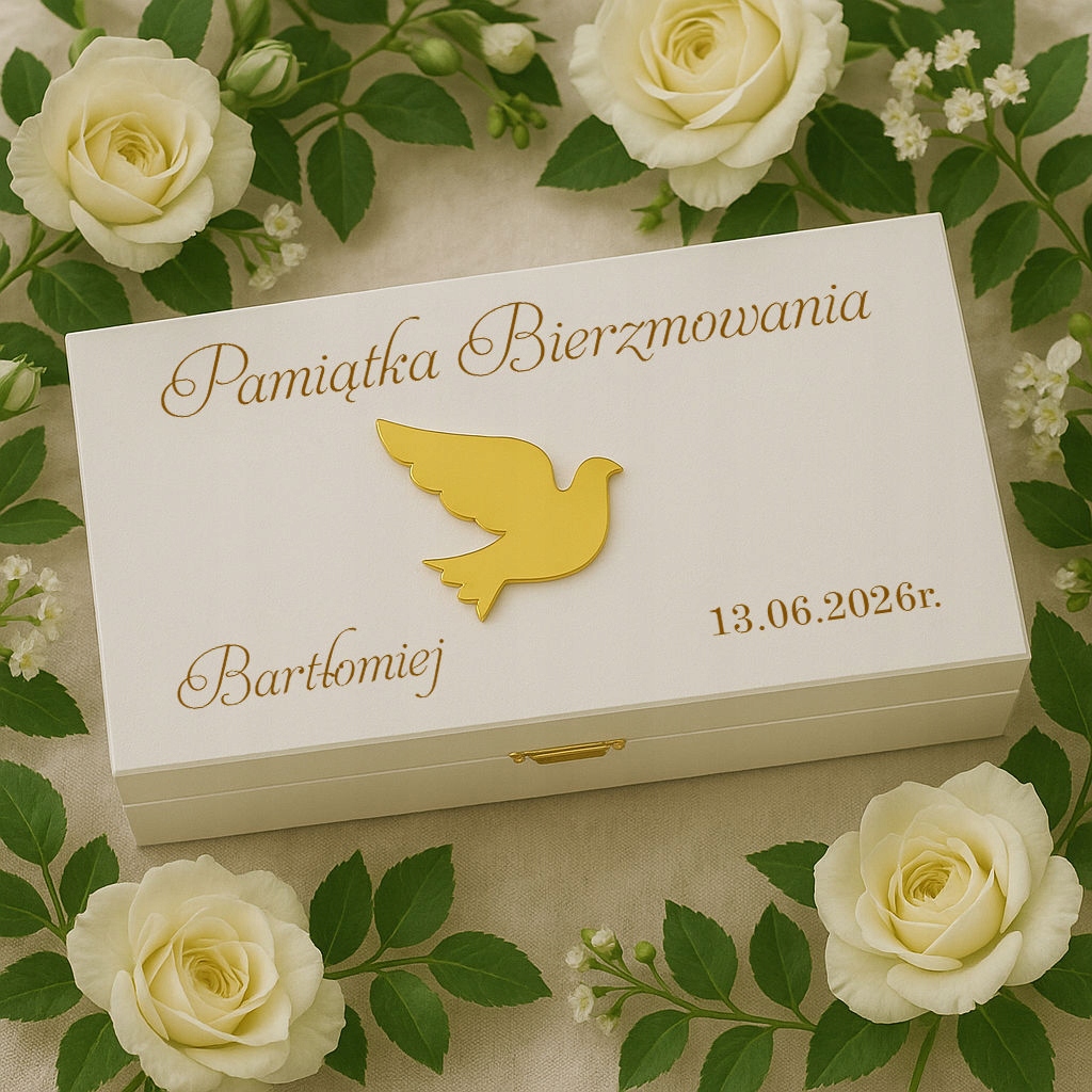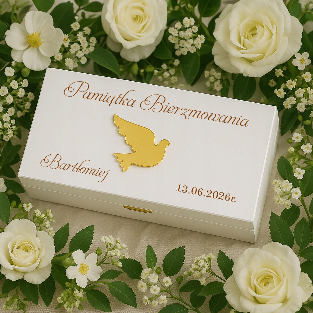 ✅ Персоналізація - на кришці ім'я дитини та дата Миропомазання, а всередині місце для золотої таблички з індивідуальними деталями побажань. (опціонально).