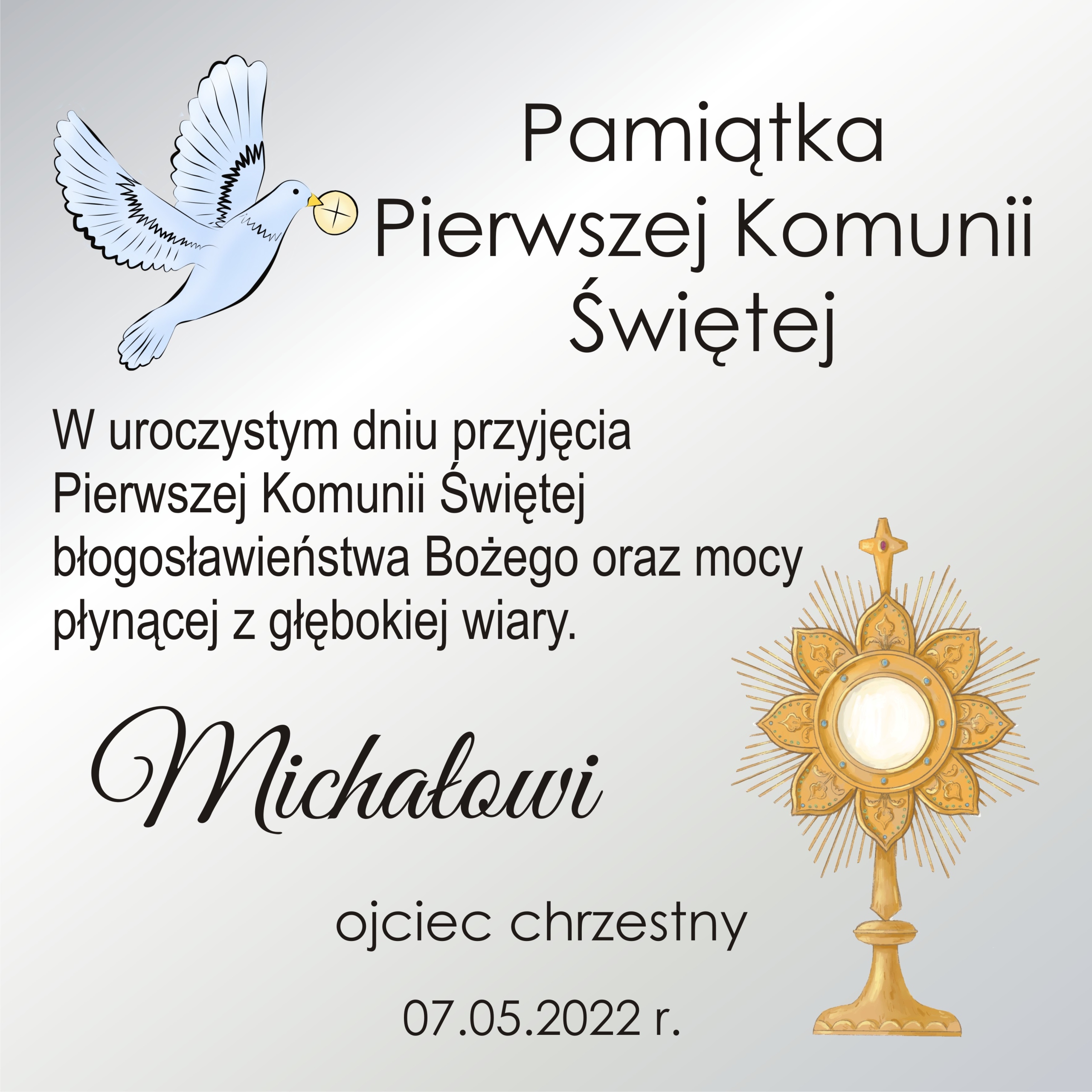 срібна картинка молиться з дитиною та Євхаристією - ідеальним як подарунок для першого Святого Причастя.