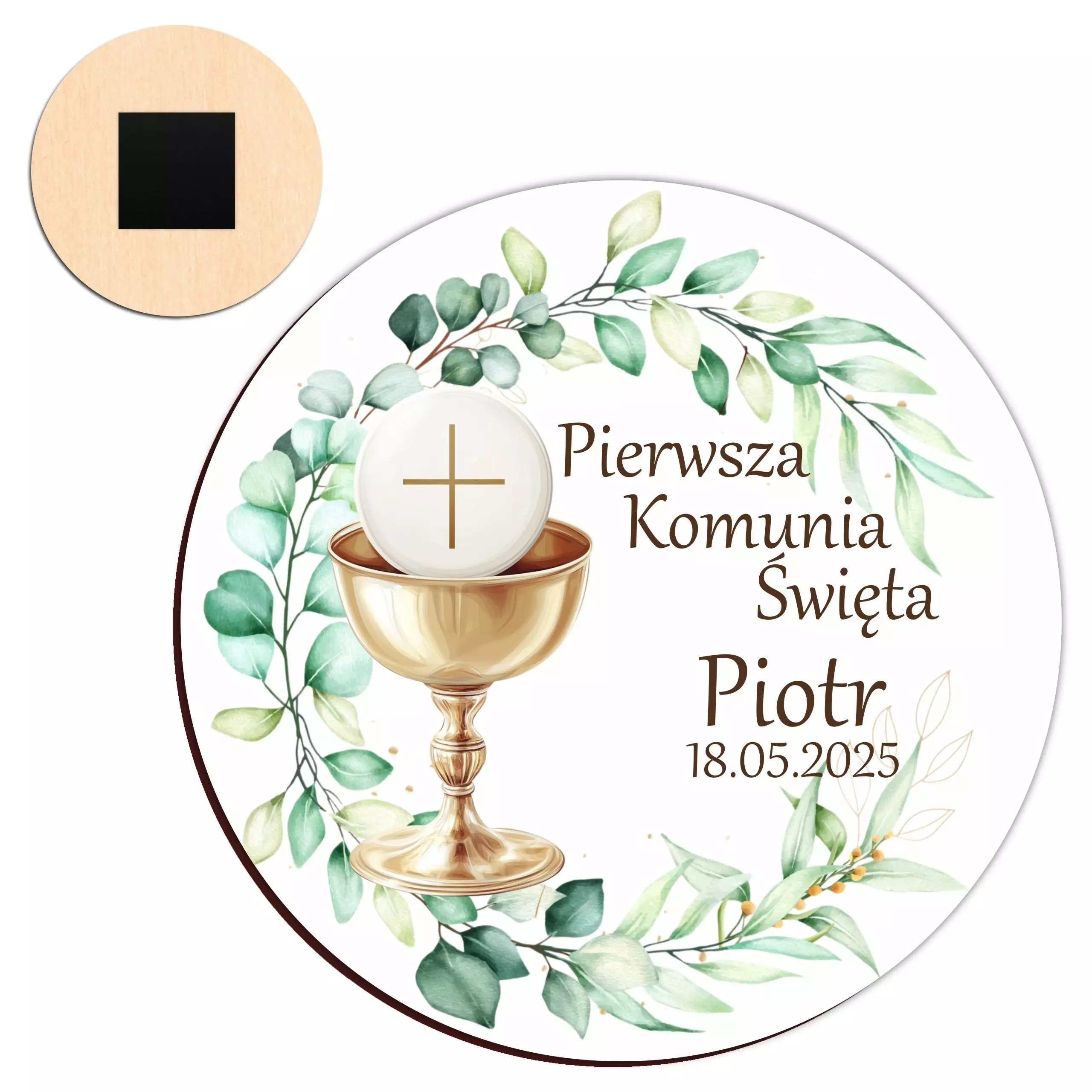 ✔ містить чотири прекрасні елементи : мішок за гроші, магніт з датою та іменем, декоративним пряником у формі дитини причастя та персоналізованого серця з посвяченням.