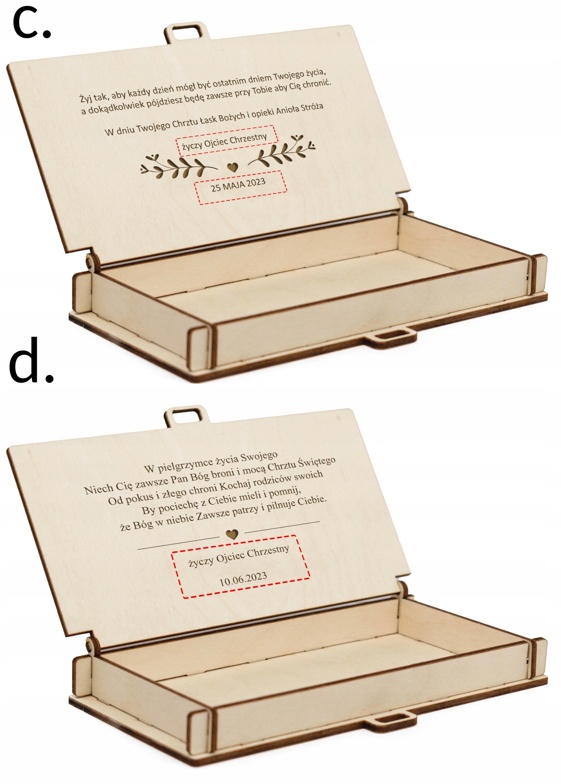 Якщо ви шукаєте унікальний та особливий подарунок на хрещення, дерев'яна скринька для грошей стане ідеальним вибором. Це інноваційний спосіб подарувати грошовий подарунок, який буде чудово виглядати багато років і неодмінно служитиме одержувачу!
