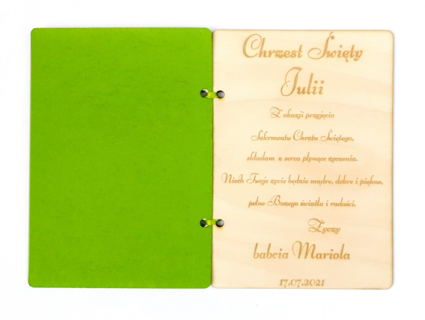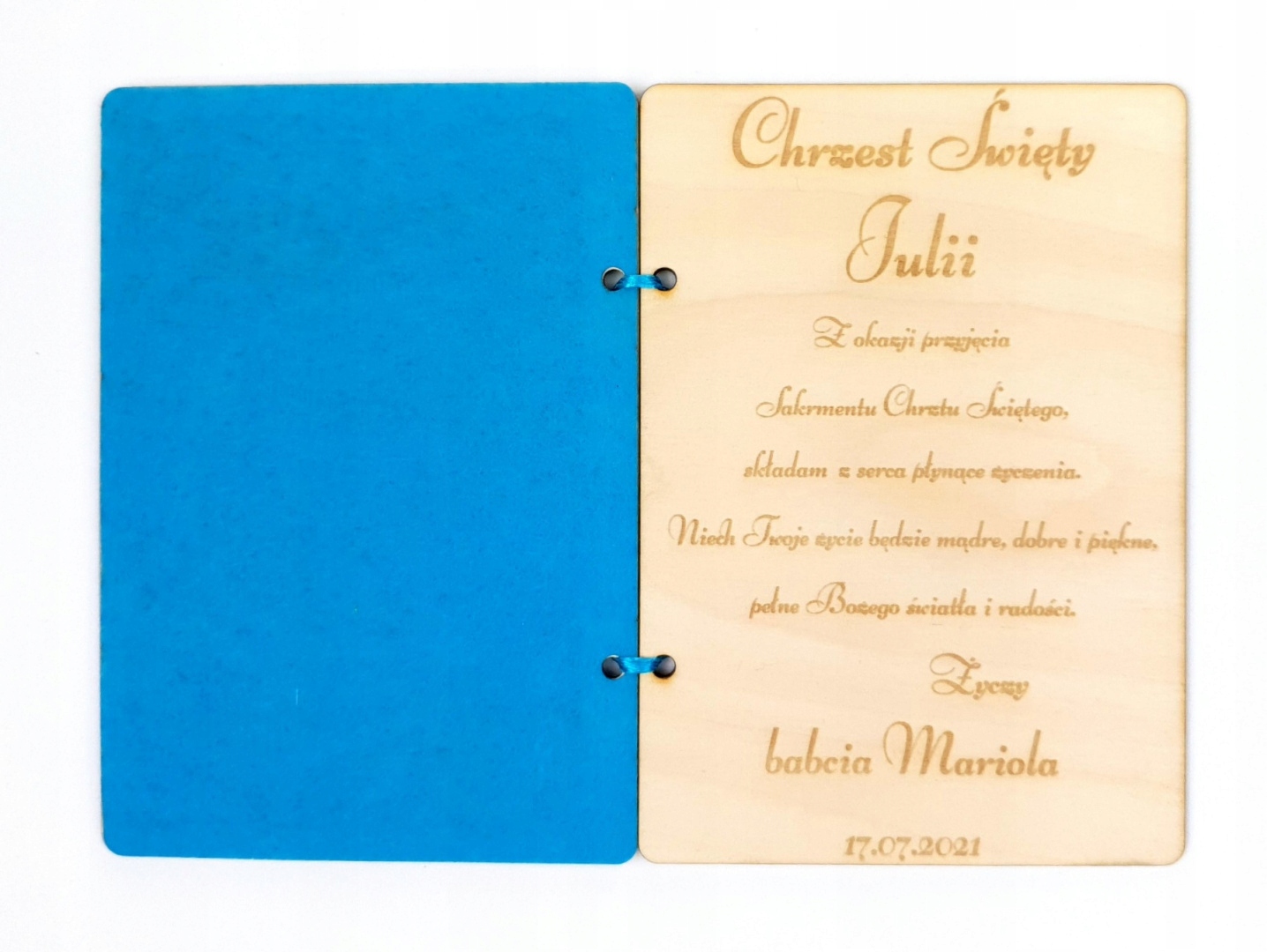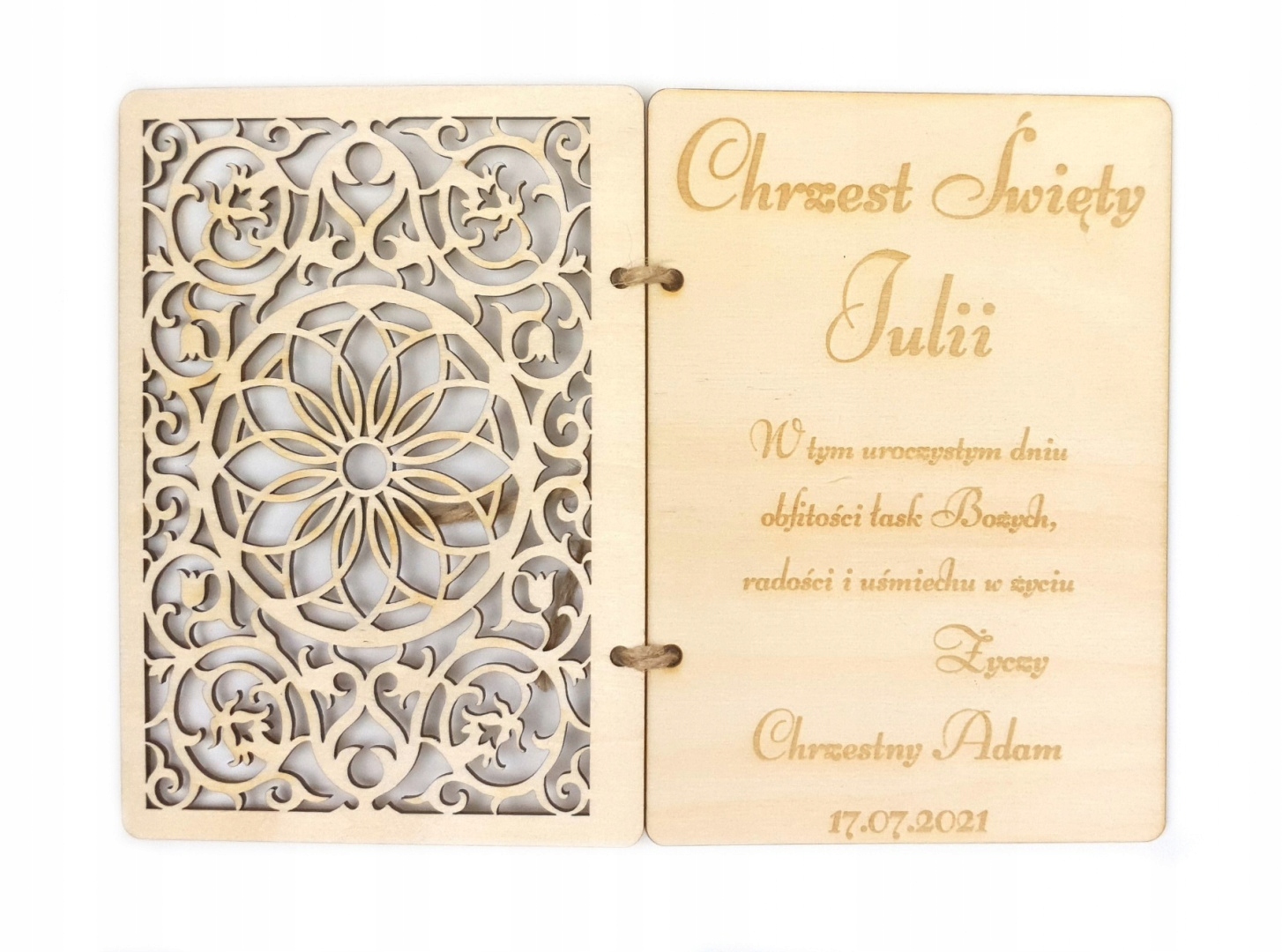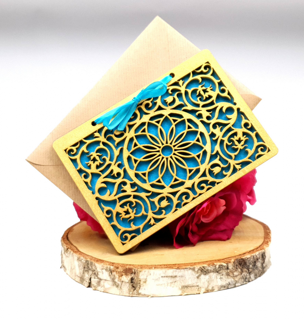 Сувенір на Святе Хрещення з дерева, різні візерунки та кольори + конверт.