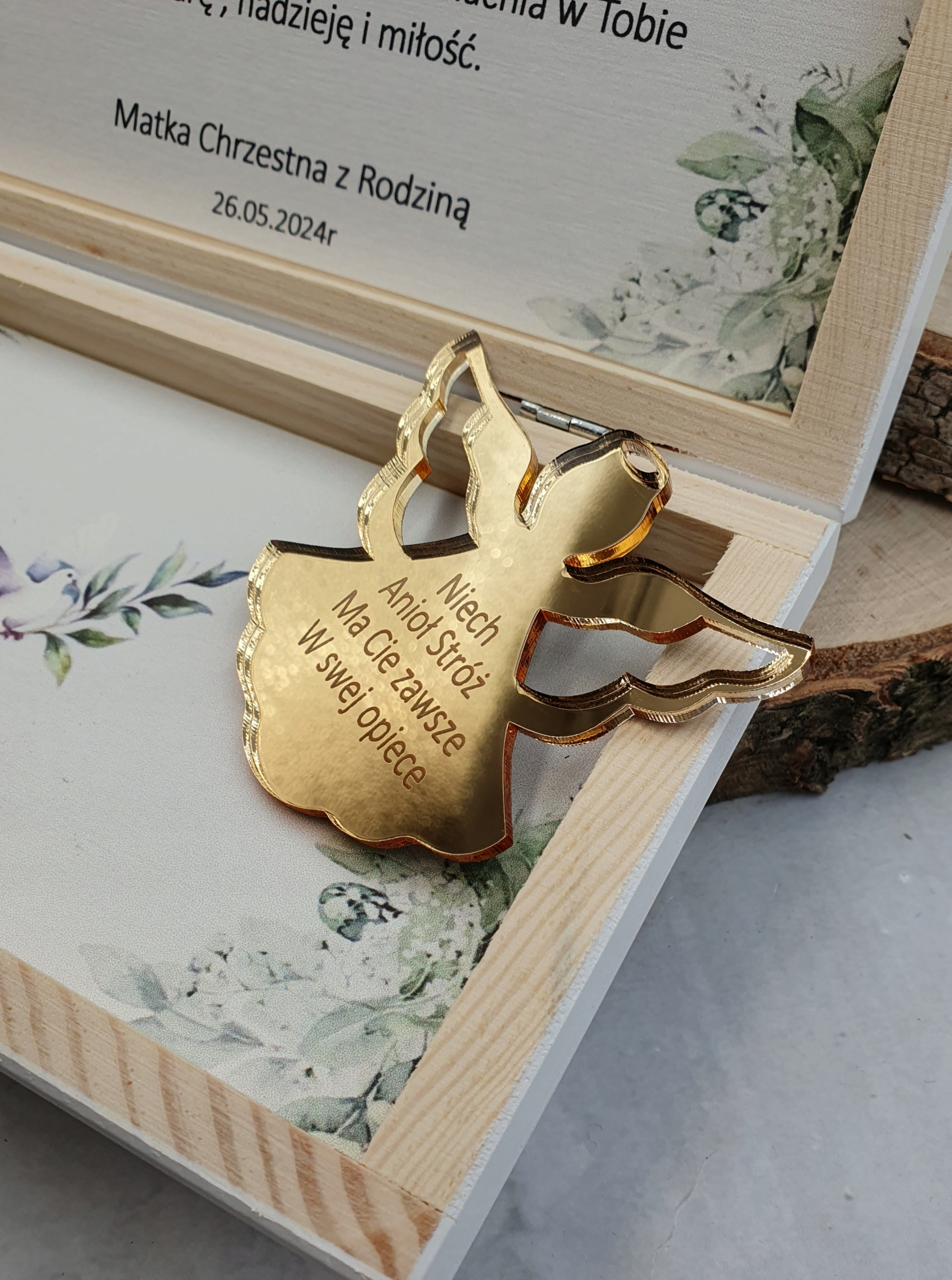 Сувенір Святого Причастя-Біла коробка. Розарій та Ангел набір