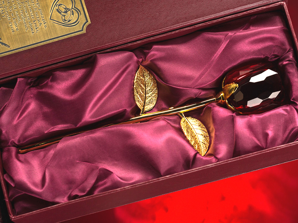 Красива подяка — виготовлена з бордового кришталю, огранена вручну та сформована троянда, прикріплена до пофарбованої золотом металевої ніжки з видно багато деталей. Додатково в набір входить вигравірувана підставка з присвятою, щоб троянда могла красиво виглядати на почесному місці в кожному домі. Доповнює все приголомшливий бордовий футляр із вигравіруваною присвятою, такої якості ви не знайдете більше ніде. Можу зробити для вас - ПОДАРУНОК НА БУДЬ-ЯКИЙ НАВОД (весілля, гостини, хрещення, причастя, день народження, вісімнадцяти іменини, ювілей, річниця весілля, день матері та батька, день дідуся та бабусі, день Святого Валентина, день вчителя, та ін.). b>