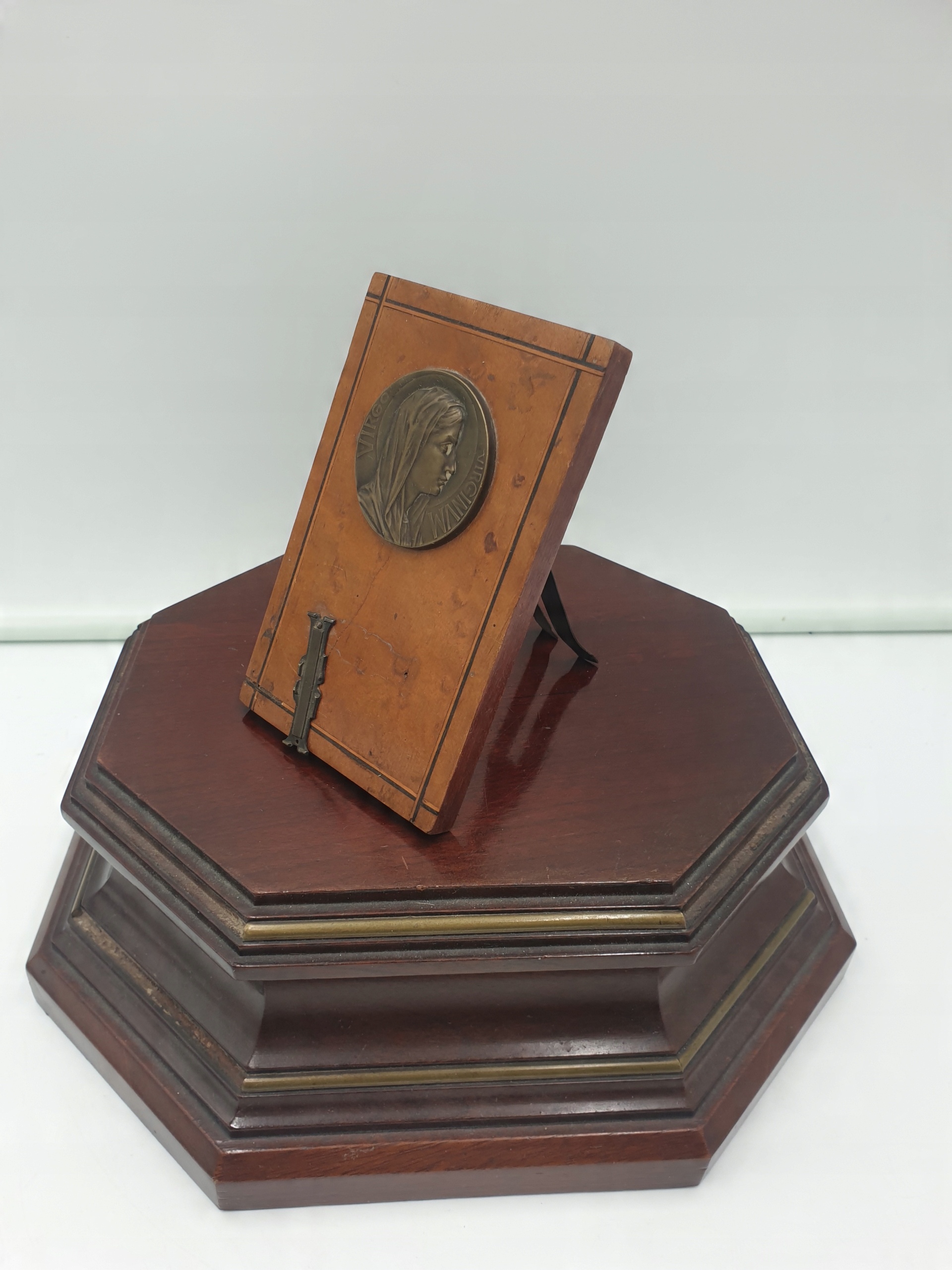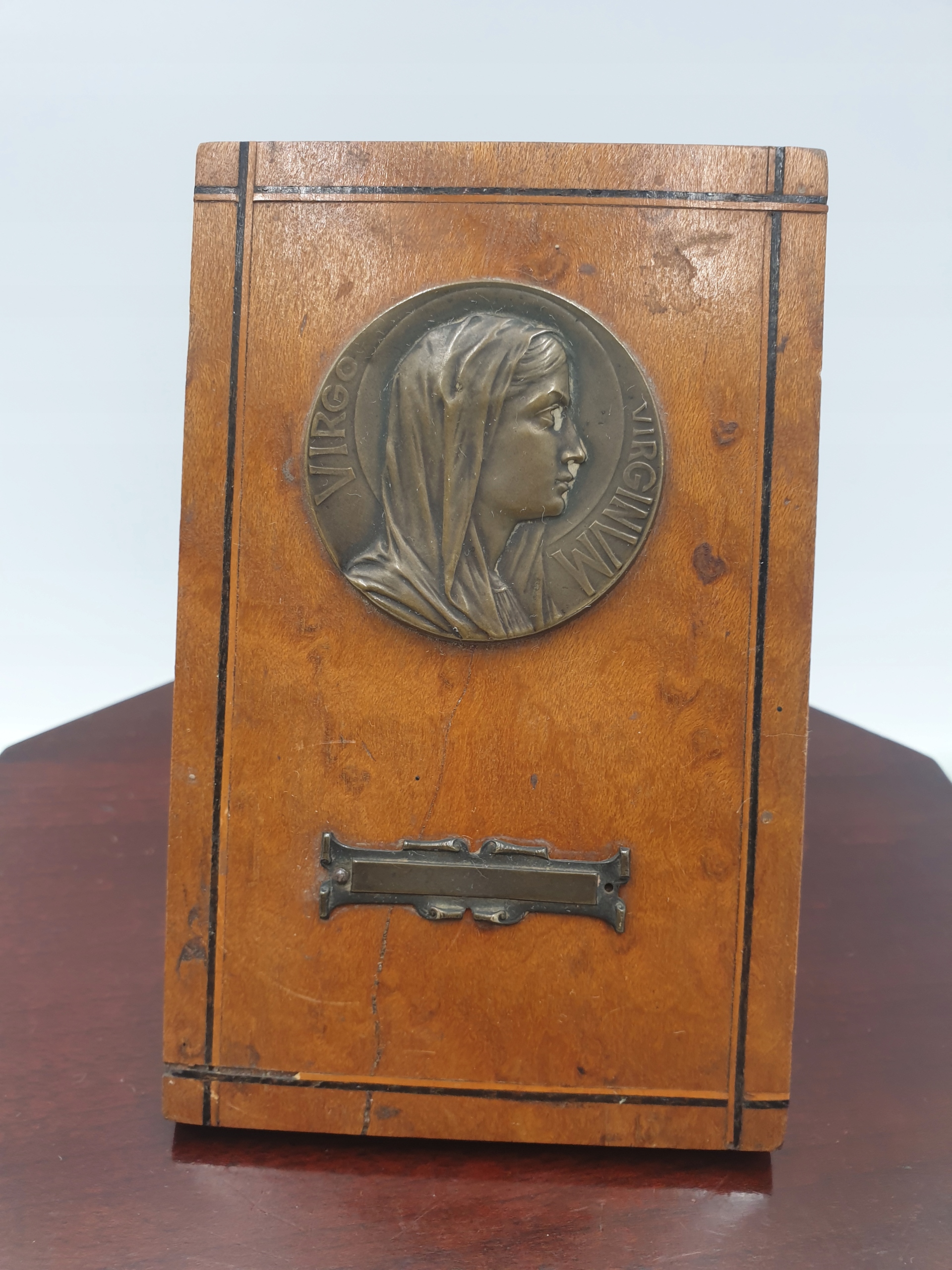 Предметом аукціону є красива пам'ятна дошка/вівтар на дереві із зображенням св. Бернадетта на латуні (з написом Virgo Virginum) має задню стопу, опорну ногу, а на задній стінці є підпис, видимий на фотографії Souvenir de Lourdes.