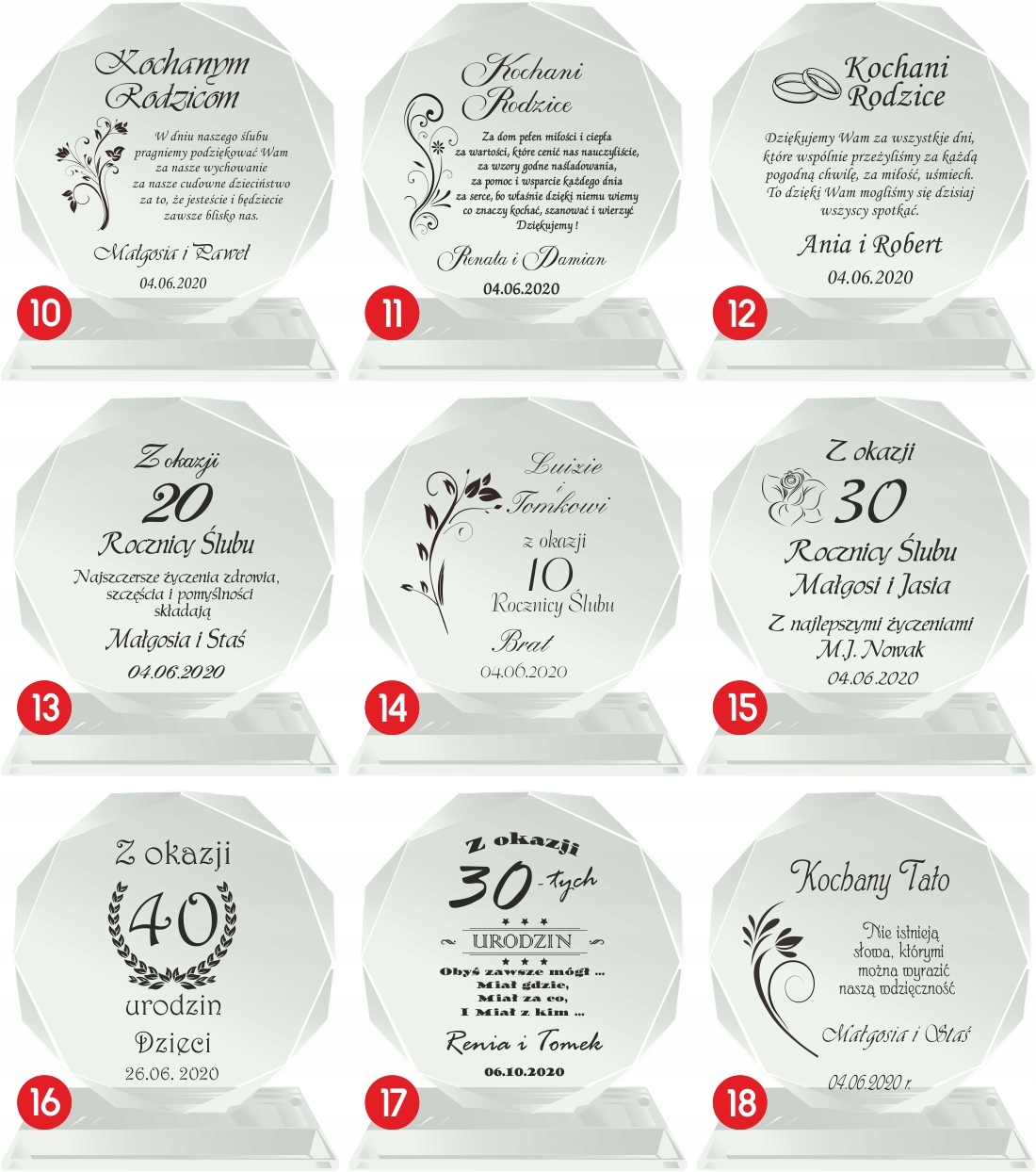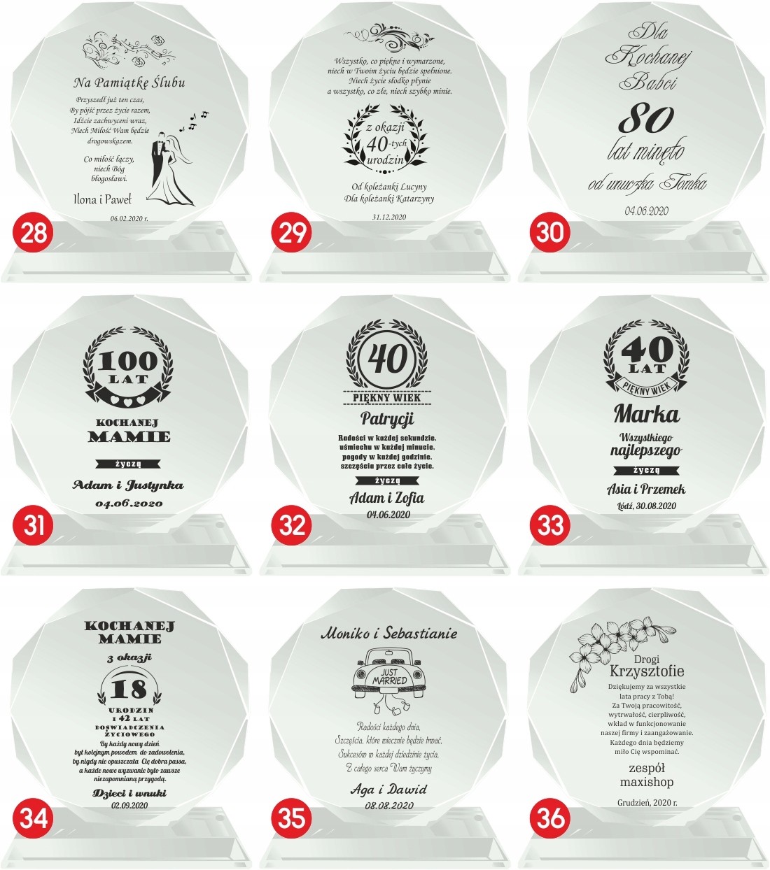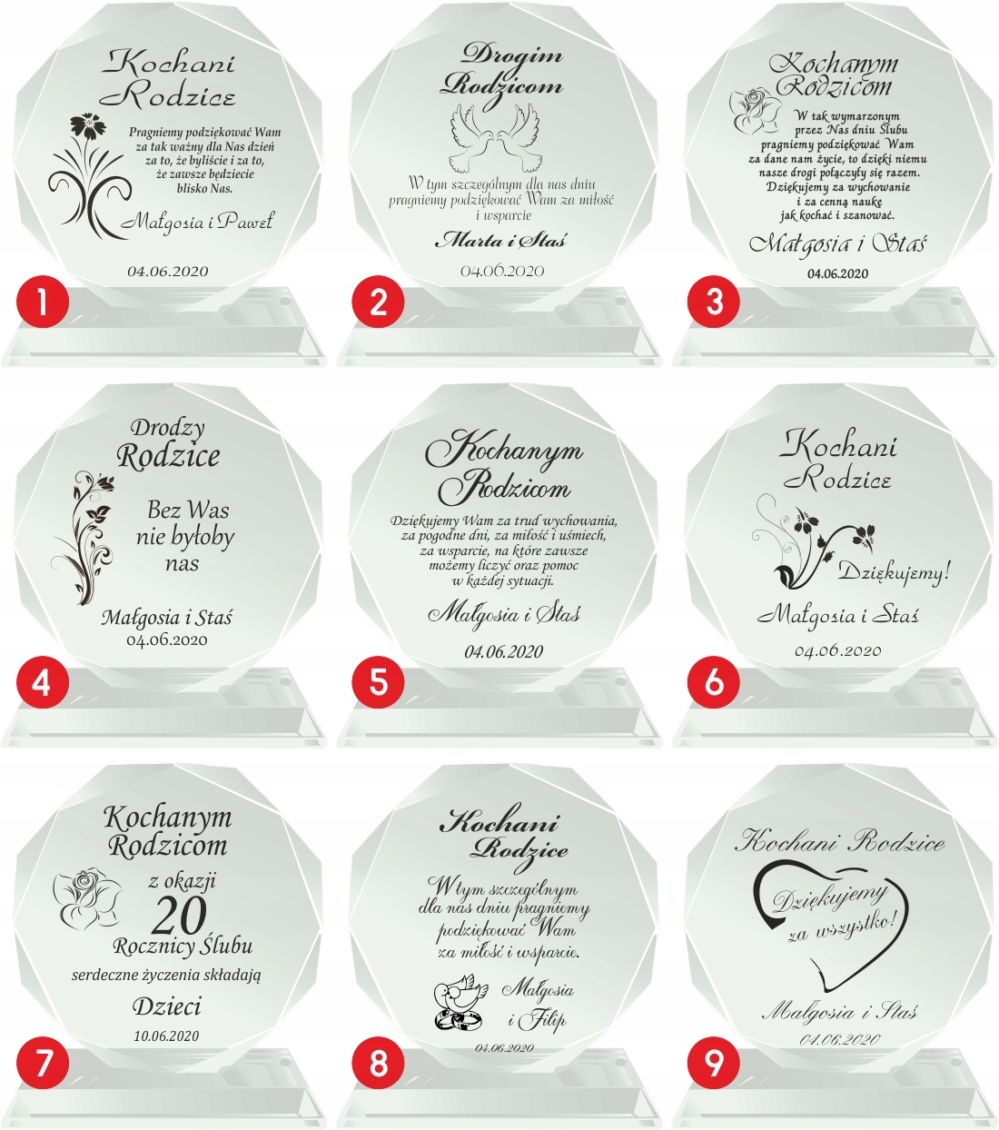 Якщо є інші зміни, вкажіть їх точно - опишіть їх нам детально. Якщо вибраний номер гравіювання потребує додаткових змін або інших даних, будь ласка, внесіть їх у примітку до продавця або надішліть окремою електронною поштою. >Якщо ваші дані неповні, ми не зможемо обробити та відправити ваше замовлення. Ми не несемо відповідальності за будь-які затримки внаслідок неповного відправлення замовлення. Якщо лист подяки буде передано вашій мамі, батькові або іншій особі, будь ласка, опишіть це детально. Продавець повідомляє, що вироби з кришталю можуть містити дрібні подряпини на поверхні та бульбашки повітря, що виникають у процесі виробництва.