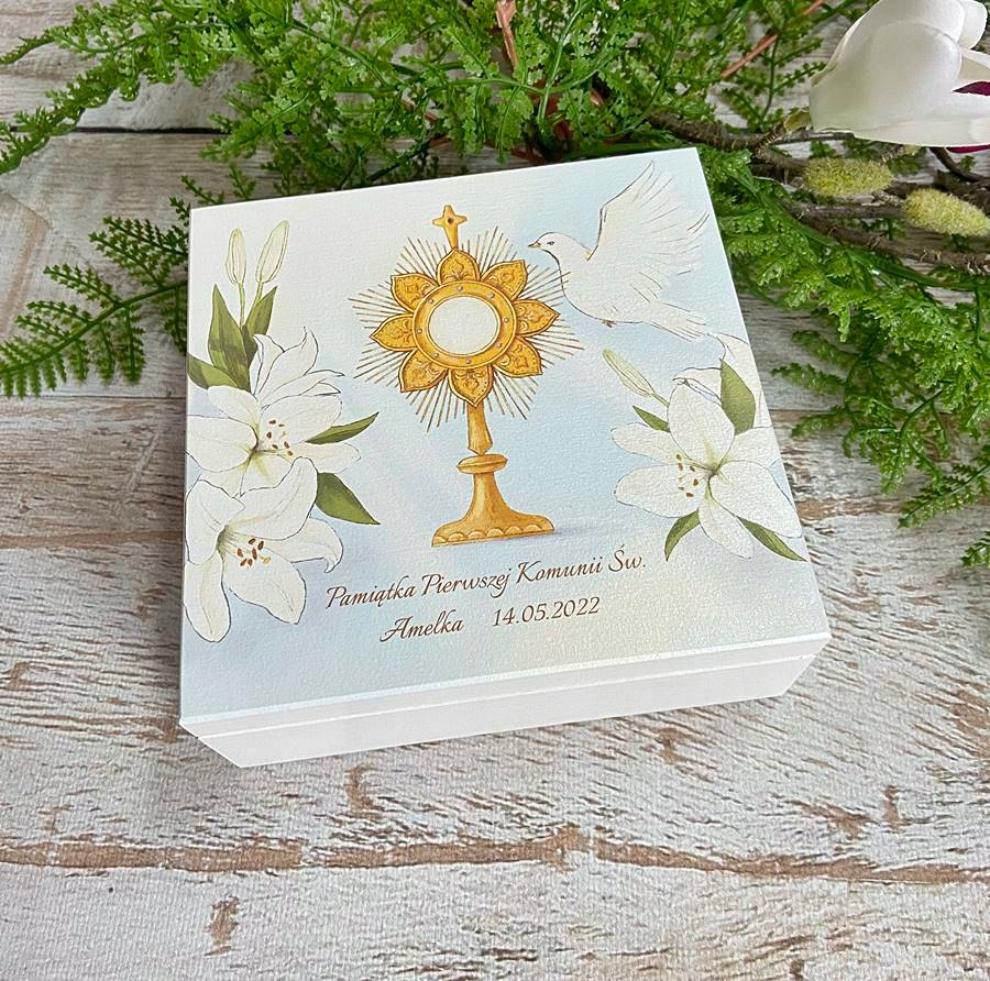Просматривая «Сувенирная коробка для причастия - графика U656», вы можете быть уверены, что данный товар из каталога «Коробки» будет доставлен из Польши и проверен на целостность. В цене товара, указанной на сайте, учтена доставка из Польши. Внимание!!! Товары для Евросоюза, согласно законодательству стран Евросоюза, могут отличаться упаковкой или наполнением.