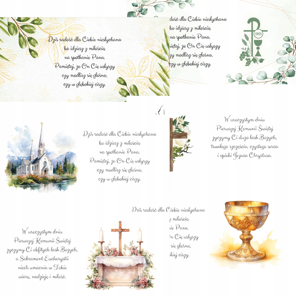 Вкладиш з побажаннями для дитини, яка приймає Перше Святе Причастя, є гарним доповненням, яке може збагатити подарунок. Випадково обраний вкладиш з кольоровим друком із відповідними побажаннями додає елегантності та особистого характеру.
