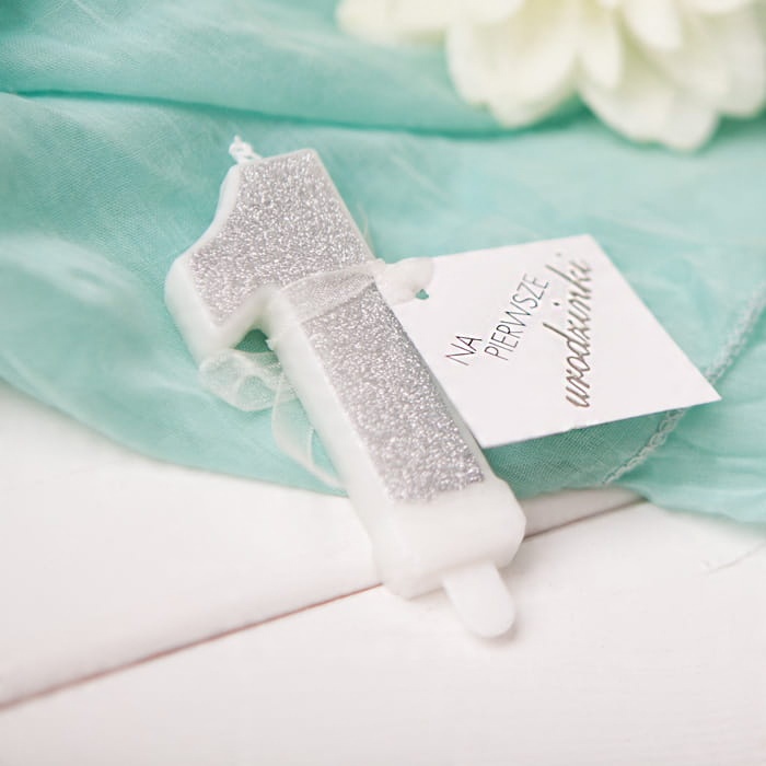 - біло-срібна свічка у формі цифри 1 "на перший день народження"