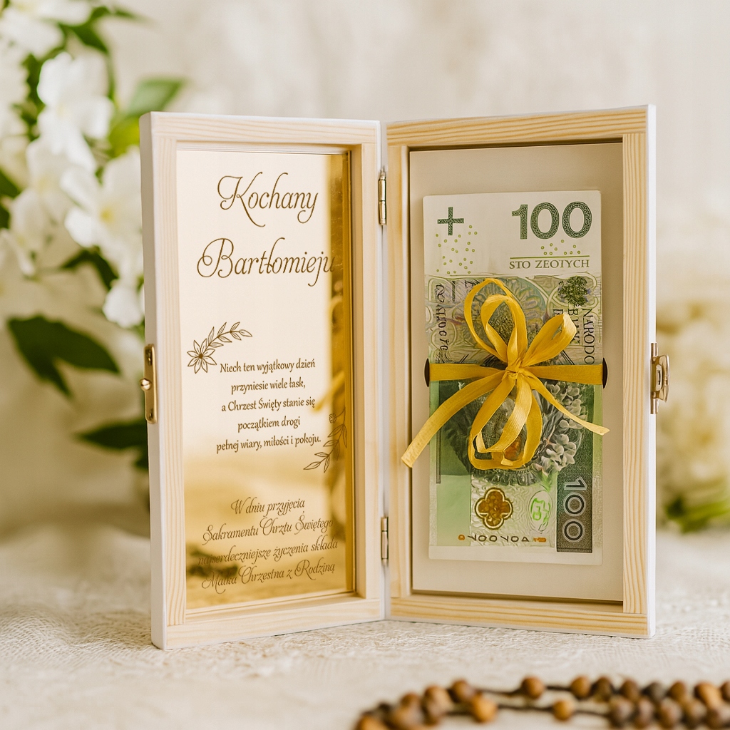 Елегантна коробка грошей - Персоналізований сувенір хрещення ✨