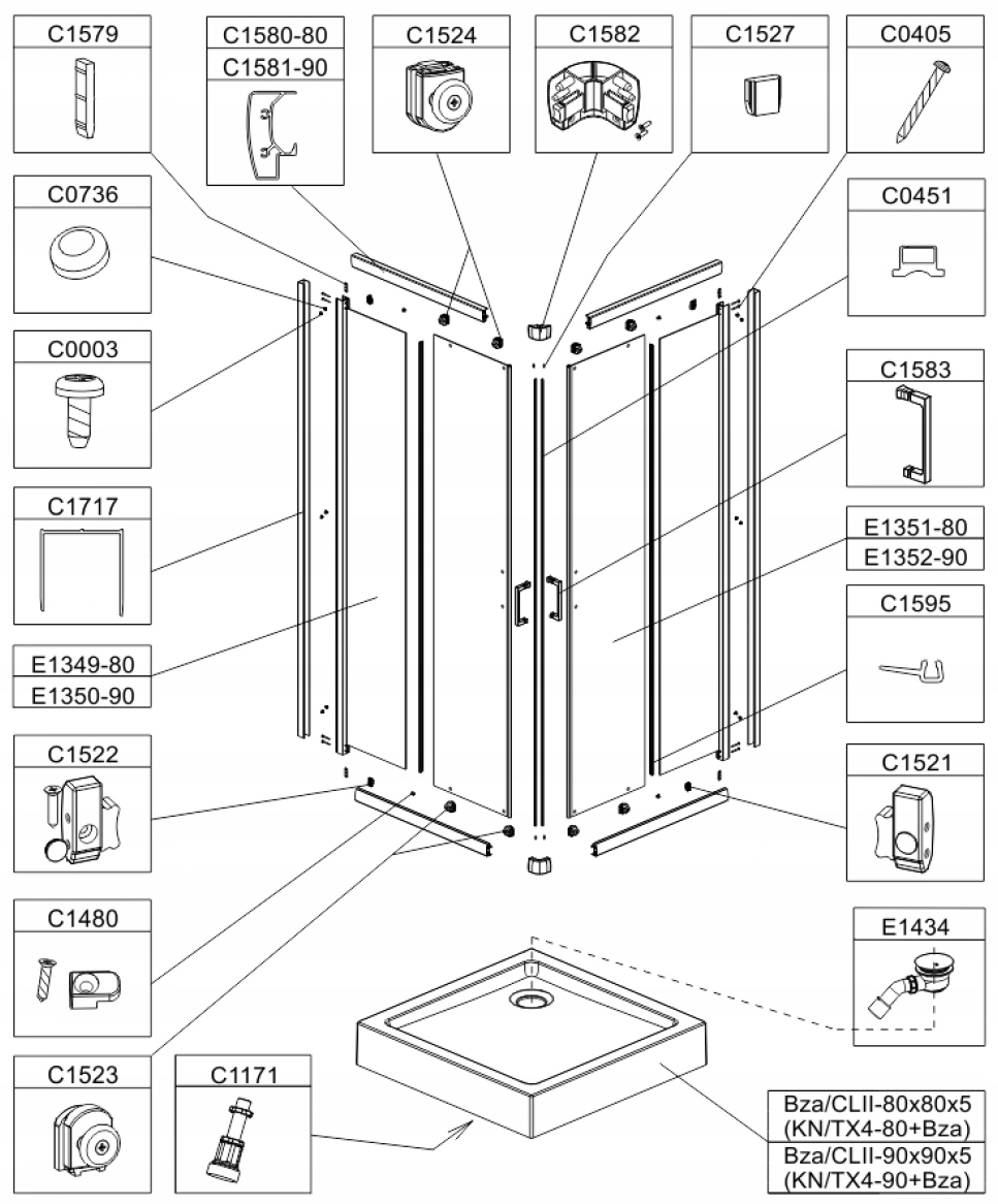 - Напівкруглі кабіни Sanplast KP4/TX4b із серії TX4