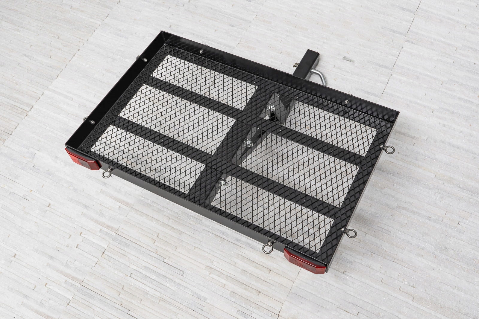 Універсальний кошик/ящик на фаркоп з розеткою 2", здатний витримувати навантаження до 100 кг. Відмінно підійде для ралі по бездоріжжю, роботи в лісі або в ситуаціях, коли нам потрібно Для швидкого збільшення вантажного простору його можна використовувати для перевезення додаткового багажу, каністр або деревини, оснащений спеціальними кільцями, які можна використовувати для подовження ременів або розширювачів для кріплення вантажів, що перевозяться.