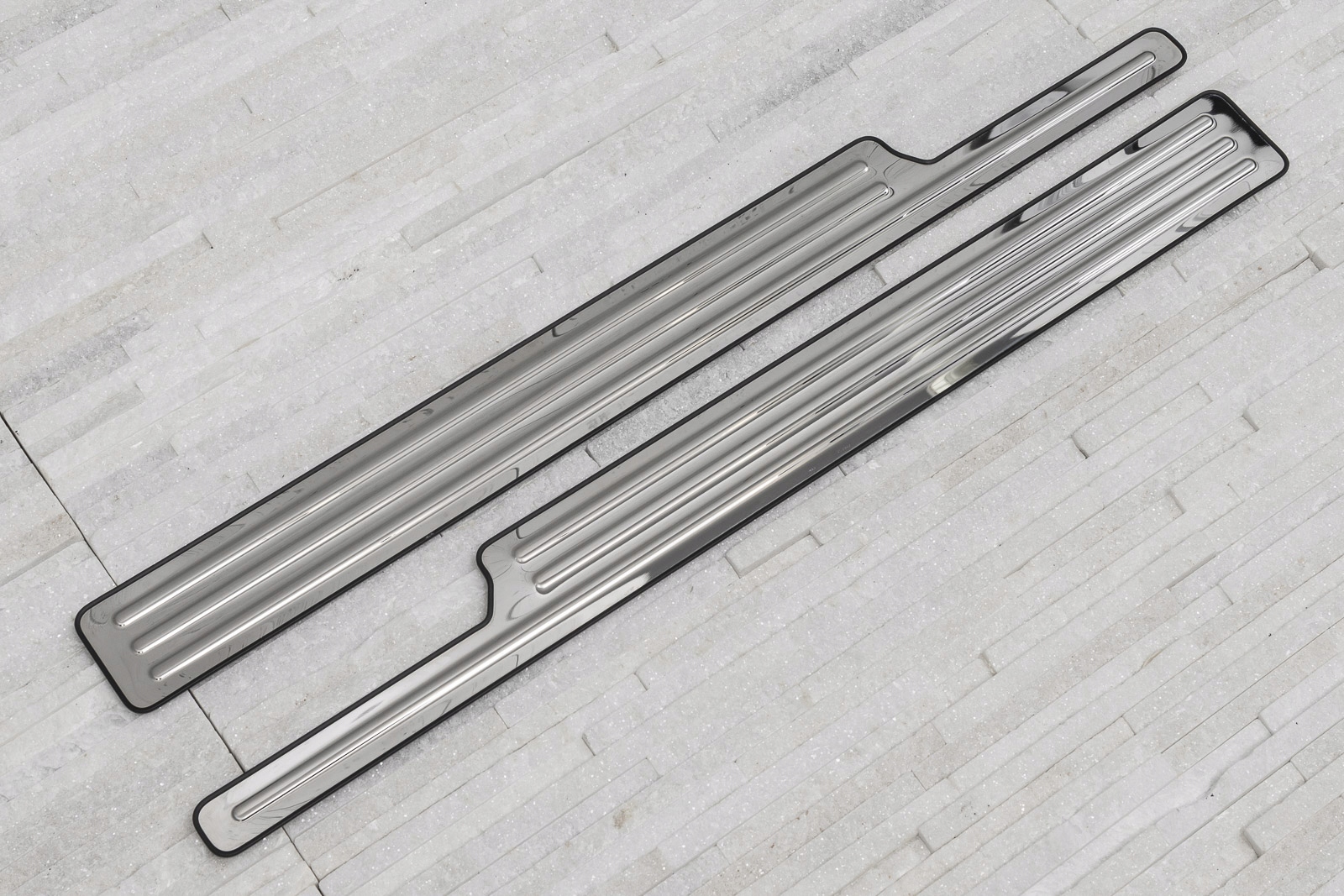 Смуги встановлені на лакованих частинах внутрішніх порогів. Вони доповнюють внутрішню лінію дверей, надають області порогів спорт та елегантний вигляд. Ця модель привертає увагу зі смаком покриття відшліфованої сталі. Окрім цінностей укладання, планки відіграють захисну роль, захищаючи пороги від подряпин та пошкодження, які можуть виникнути при виїзді та виїзді з машини.
