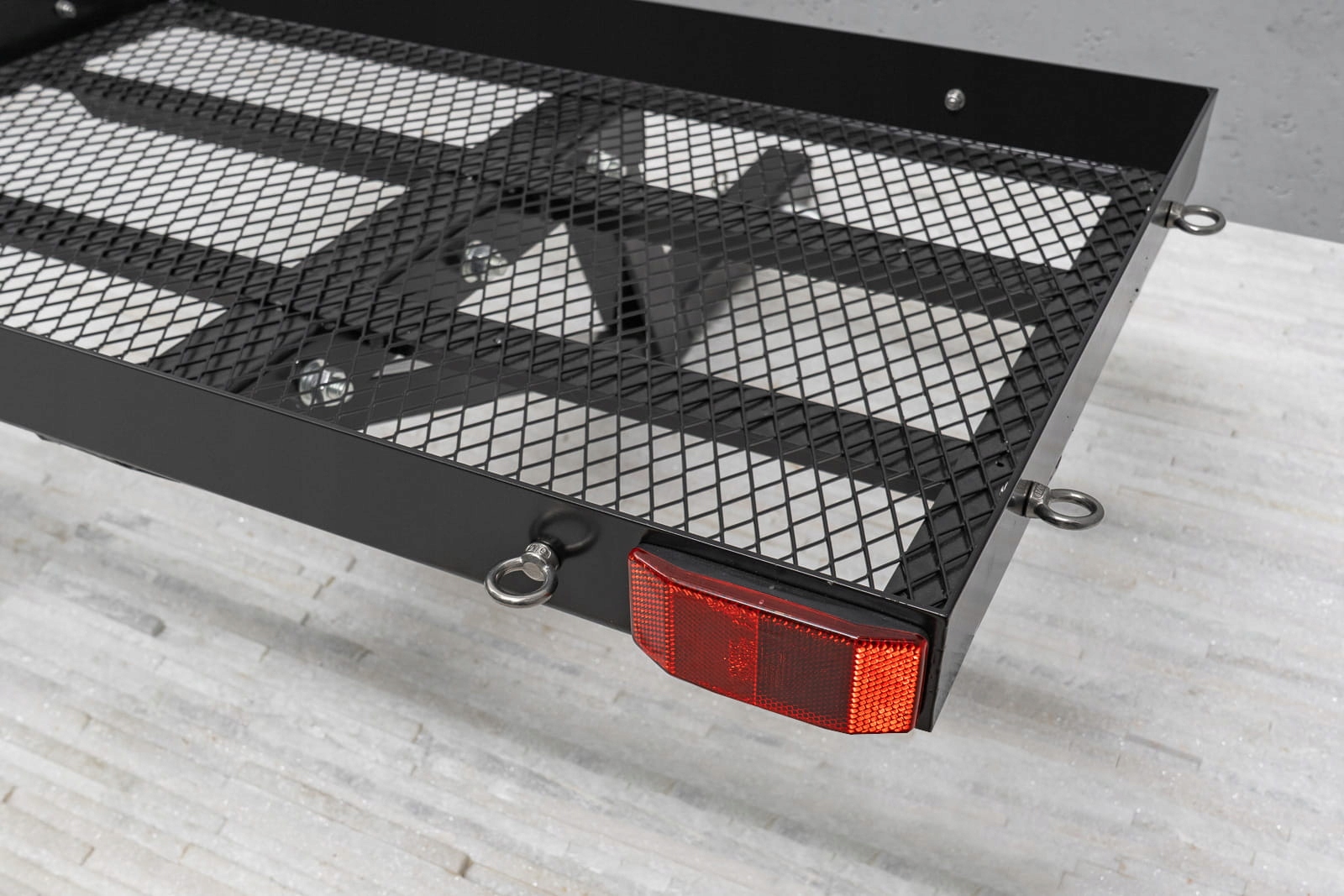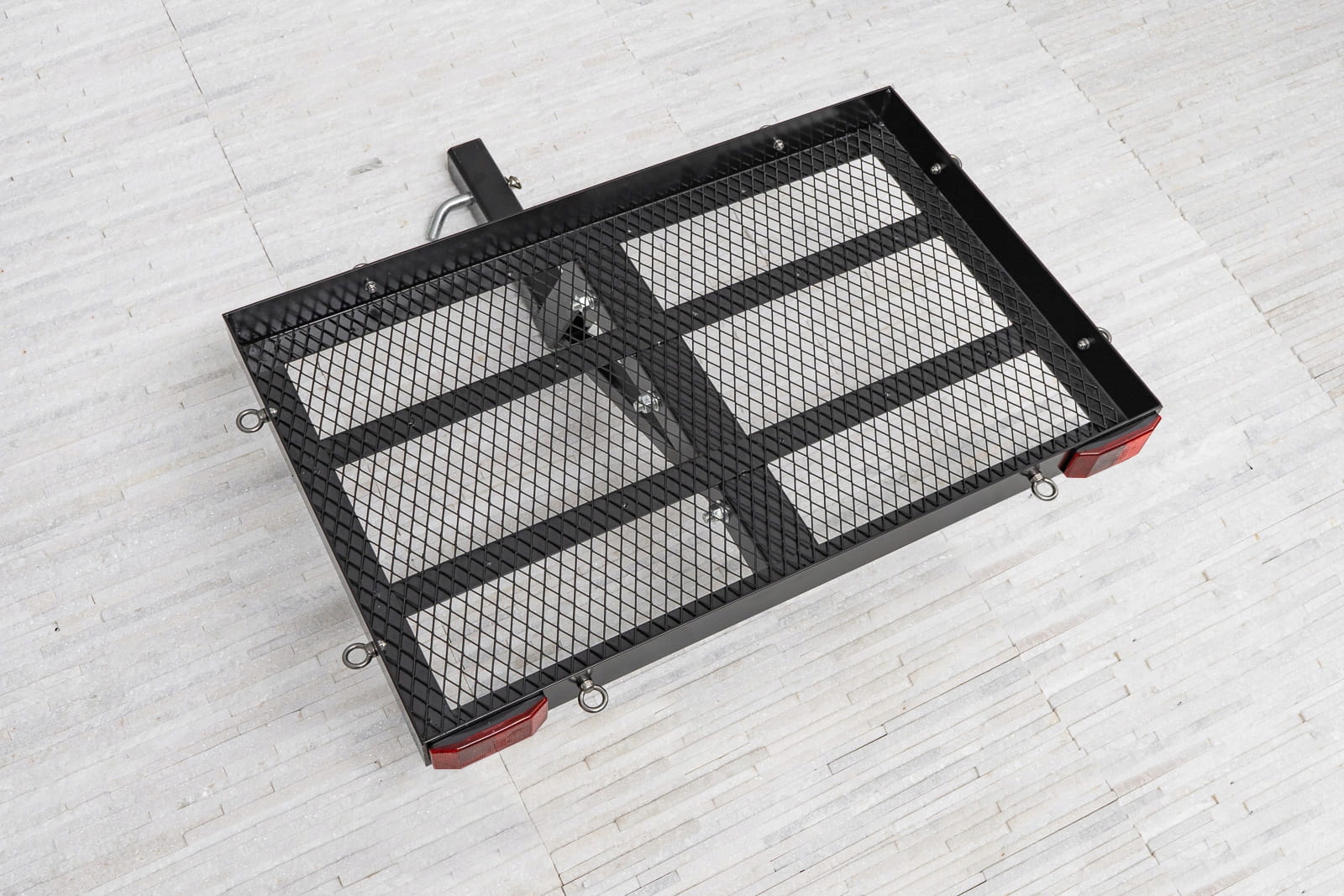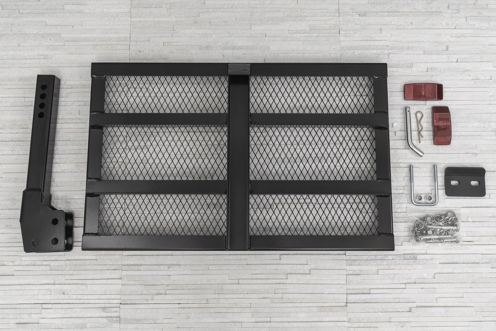 Універсальний кошик/ящик на фаркоп з розеткою 2", здатний витримувати навантаження до 100 кг. Відмінно підійде для ралі по бездоріжжю, роботи в лісі або в ситуаціях, коли нам потрібно Для швидкого збільшення вантажного простору його можна використовувати для перевезення додаткового багажу, каністр або деревини, оснащений спеціальними кільцями, які можна використовувати для подовження ременів або розширювачів для кріплення вантажів, що перевозяться.