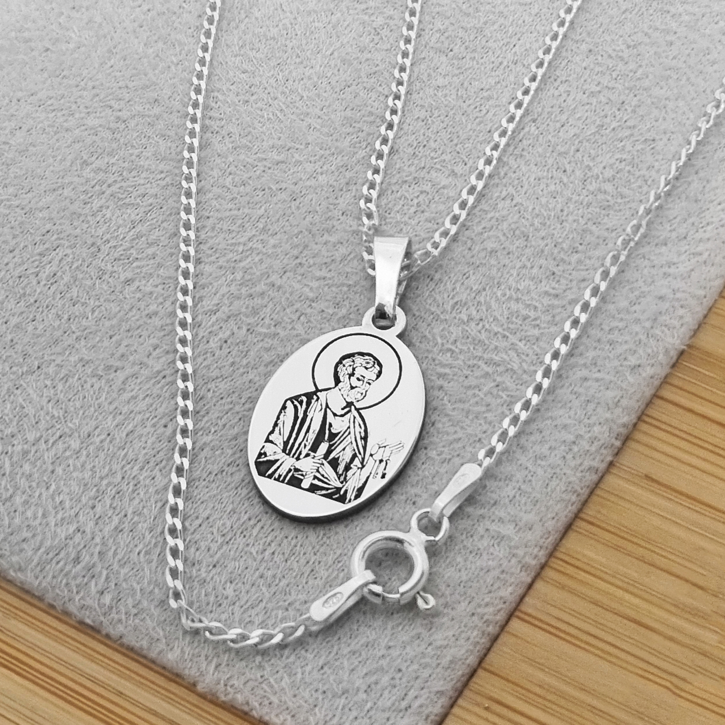 Срібний медальйон 925 р. Святий апостол Петро, оксидований, двосторонній.