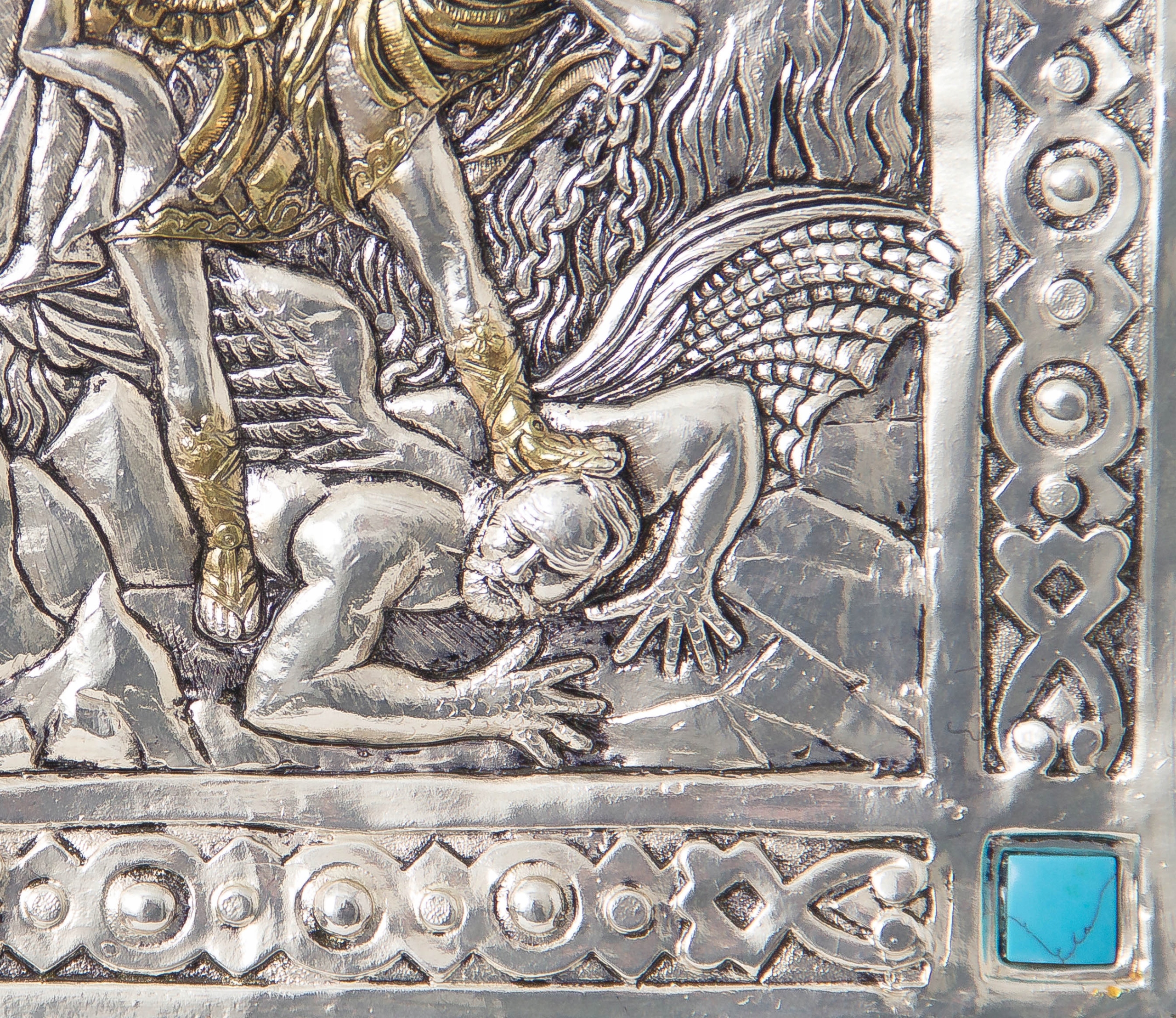 Срібно-позолочена ікона св. Михаїла Архангела, все в металі № 103М
