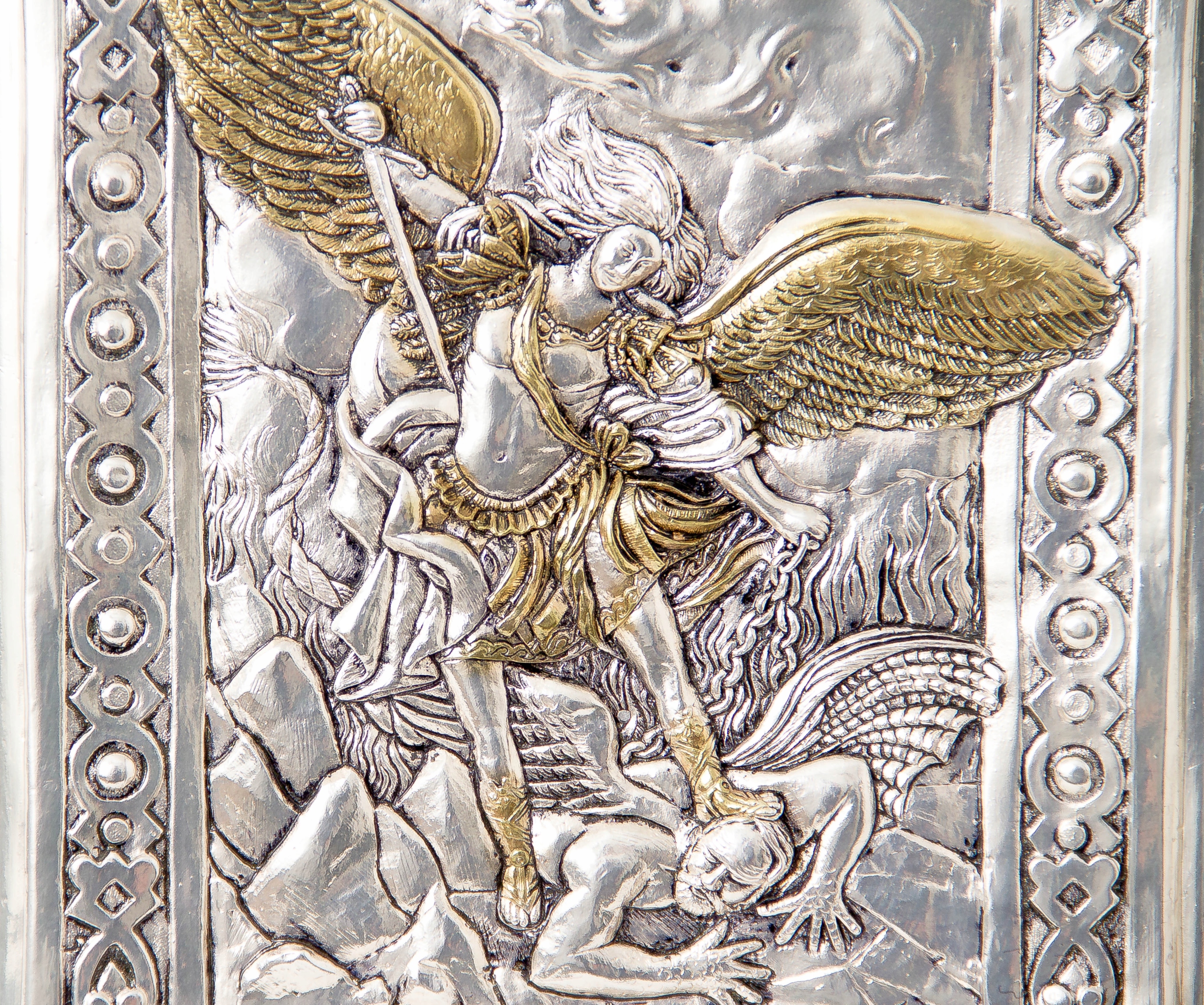 Глибокий рельєф створює враження, що Архангел простягає руку до нас. Архангел Михаїл — це вогненний воїн, який бореться в ім’я справедливості та правапокликаного віруючими на боротьбу з силами зла. Цей Князь Ангелів дозволяє вам знайти своє внутрішнє світло.