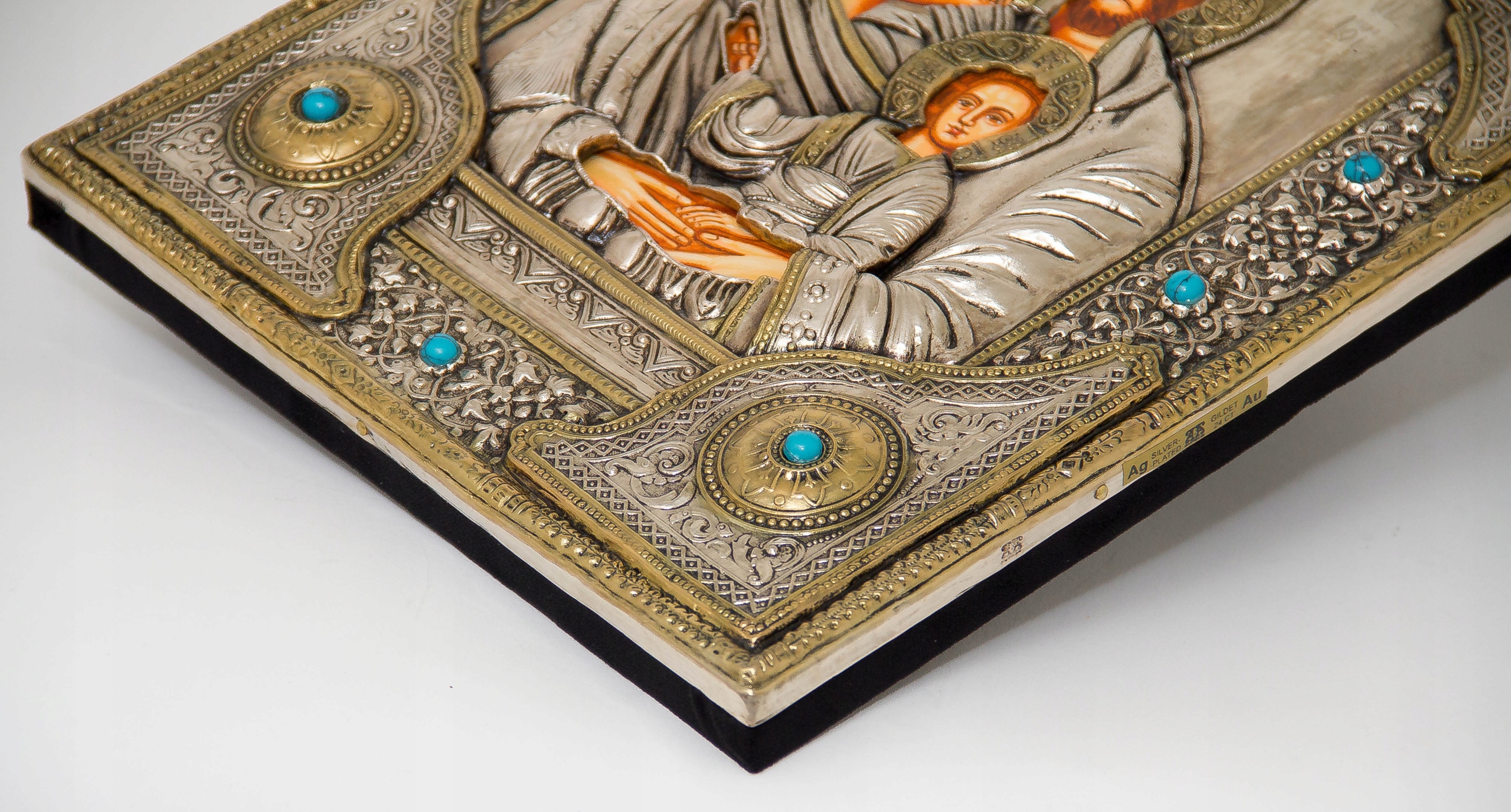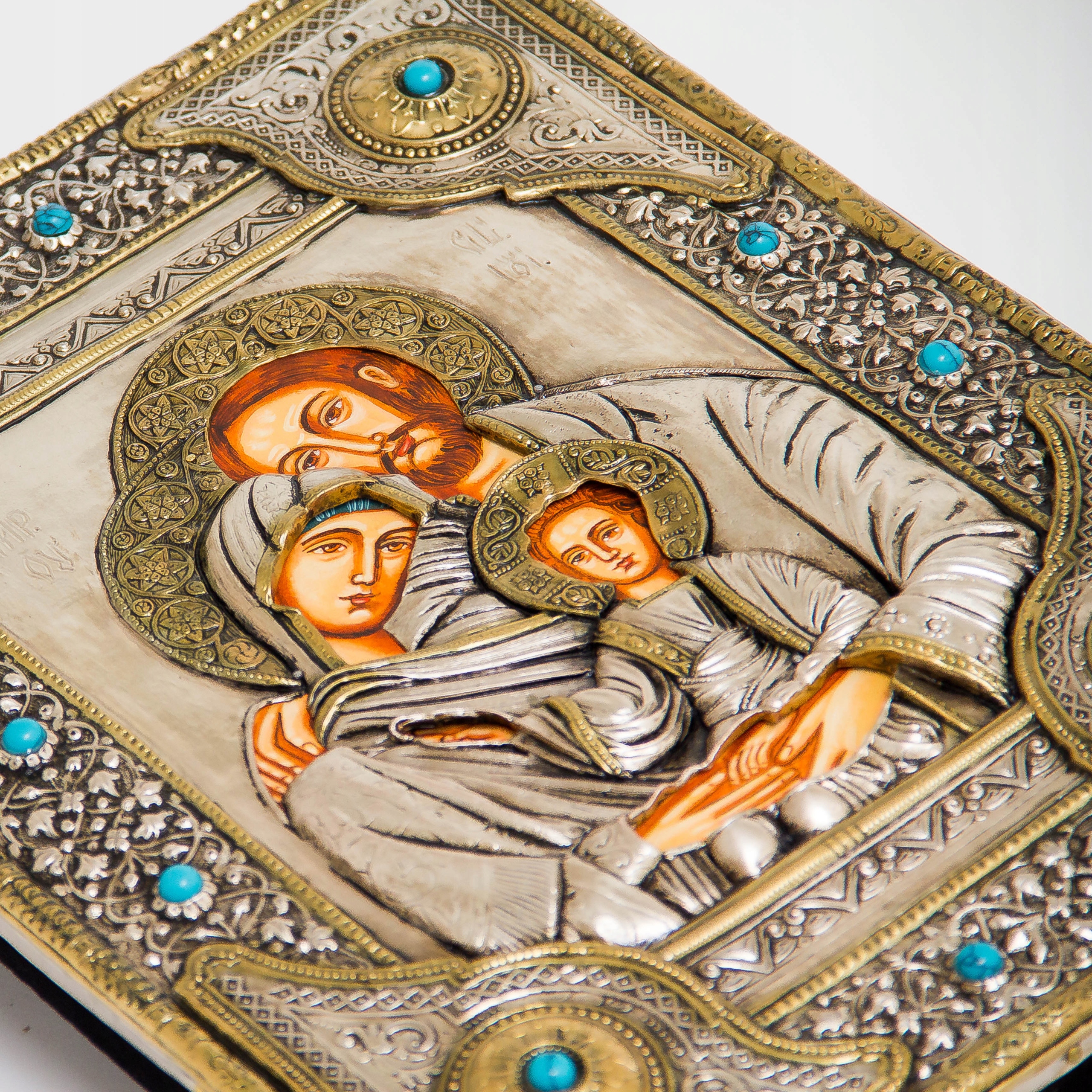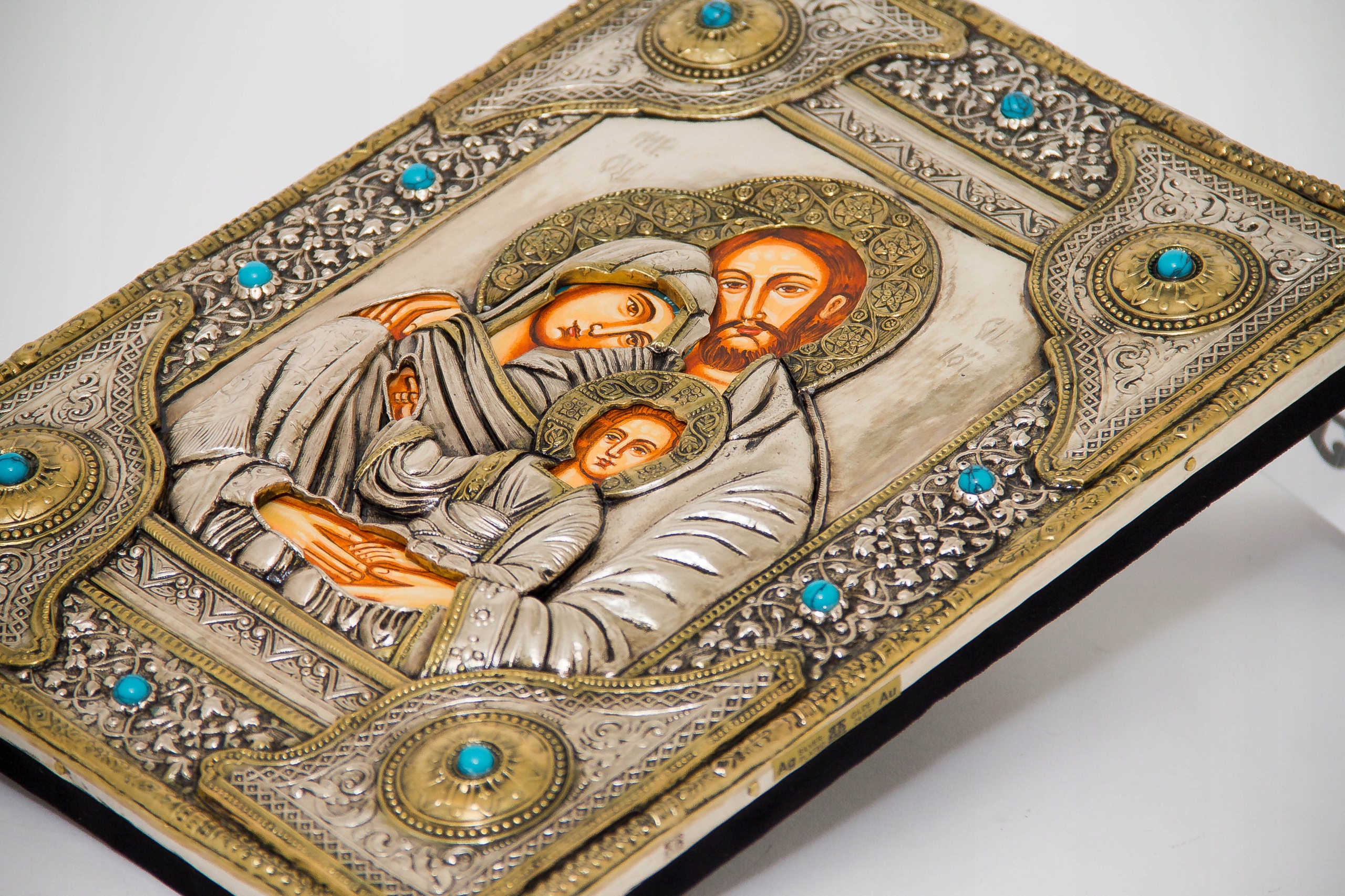 Срібна та позолочена ікона Пресвятої родини з Назарету, ручний розпис № 140