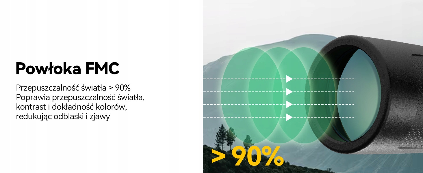 - FMC покриття; Світлопроникність > 90%; Покращує пропускання світла, контрастність і точність кольору, зменшуючи відблиски та ореоли