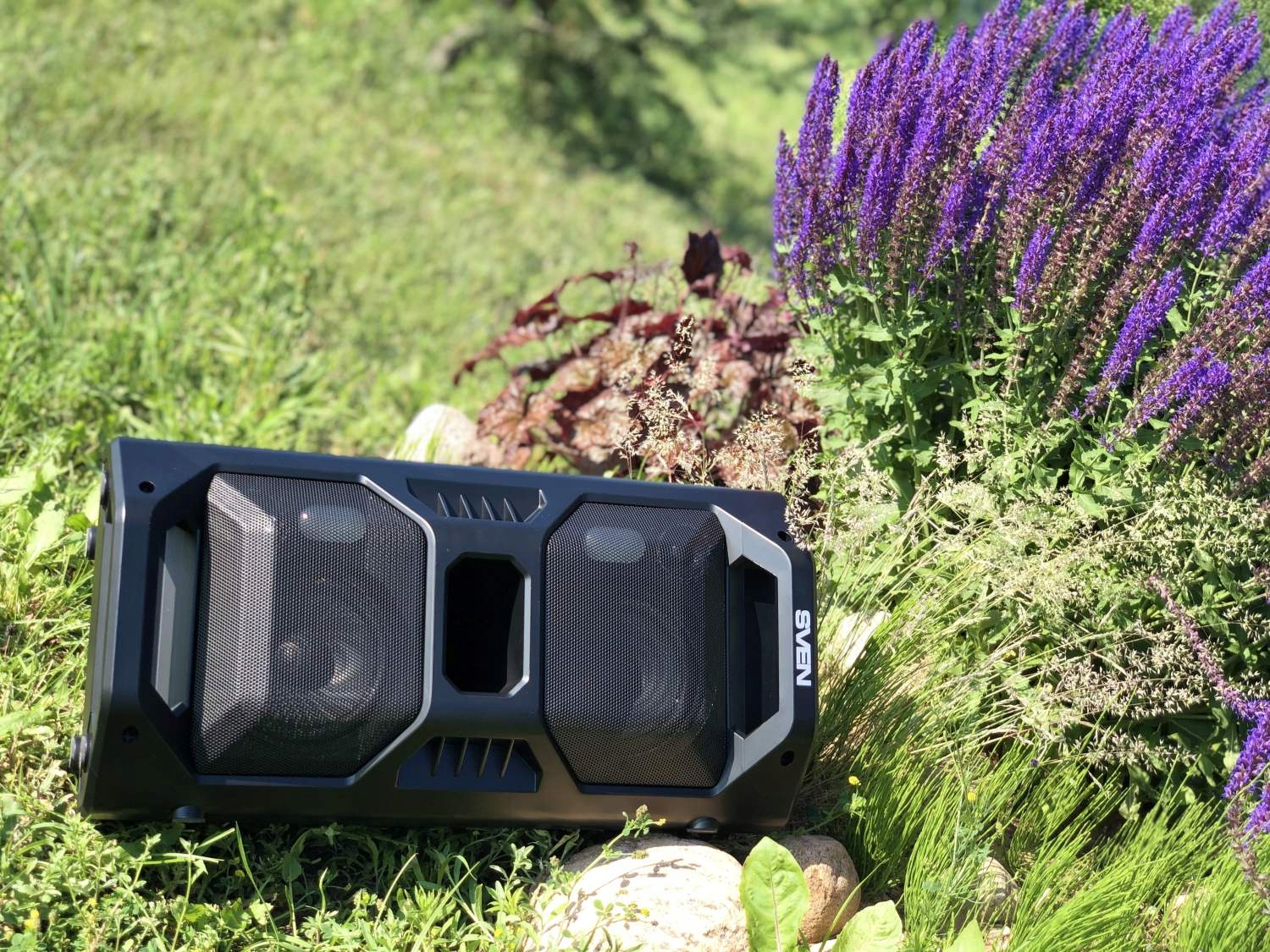 Фінському бренду SVEN вдалося створити дуже міцну і потужну бездротову Bluetooth колонку потужністю 50 Вт - вражаючий показник в категорії портативних моделей. По суті, це повноцінний мультимедійний центр (бумбокс) з двома вбудованими акумуляторами, кожен ємністю до 4000mAh. Все це для забезпечення достатньої потужності цього потужного агрегату. Колонка відтворює музику з флешки, карти MicroSD, а також ловить радіохвилі і, звичайно, підключається до бездротових пристроїв. У коробці з пристроєм, крім загального динаміка, користувач знайде пару кабелів: джек і USB-кабель для зарядки SVEN PS-600. Апарат досить великий. Транспортування полегшується завдяки спеціальній ручці. На передній панелі розміщено цілих чотири динаміки діаметром35мм і 110ммібасовий рефлексу центральній частині пристрою. Пристрій ідеально підійде для будь-якої музики.