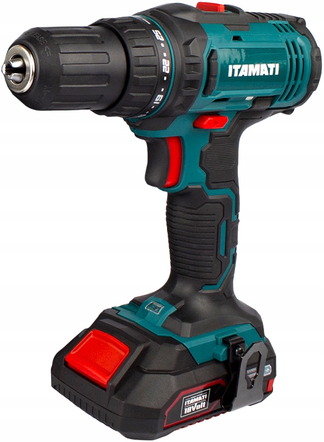 акумуляторний свердління ISR1835-B22 ITAMATI -це зручний інструмент , призначений для буріння без удару та гвинта за допомогою зчеплення перевантаження . Машина пропонує дві передачі , змінені великим і розбірливим перемикачем у верхній частині кузова. Перша передача забезпечує максимальний крутний момент та швидкість до 400 об/хв, що ідеально підходить для гвинтів та гвинтів. Друга передача дозволяє швидко свердлити зі швидкістю до 1400 об/хв, що буде працювати на роботі з деревиною, металом, керамікою та пластмасами. гладке регулювання швидкості , доступне завдяки електроніці в комутаторі, дозволяє точно відрегулювати швидкість на етап роботи та заготовку.