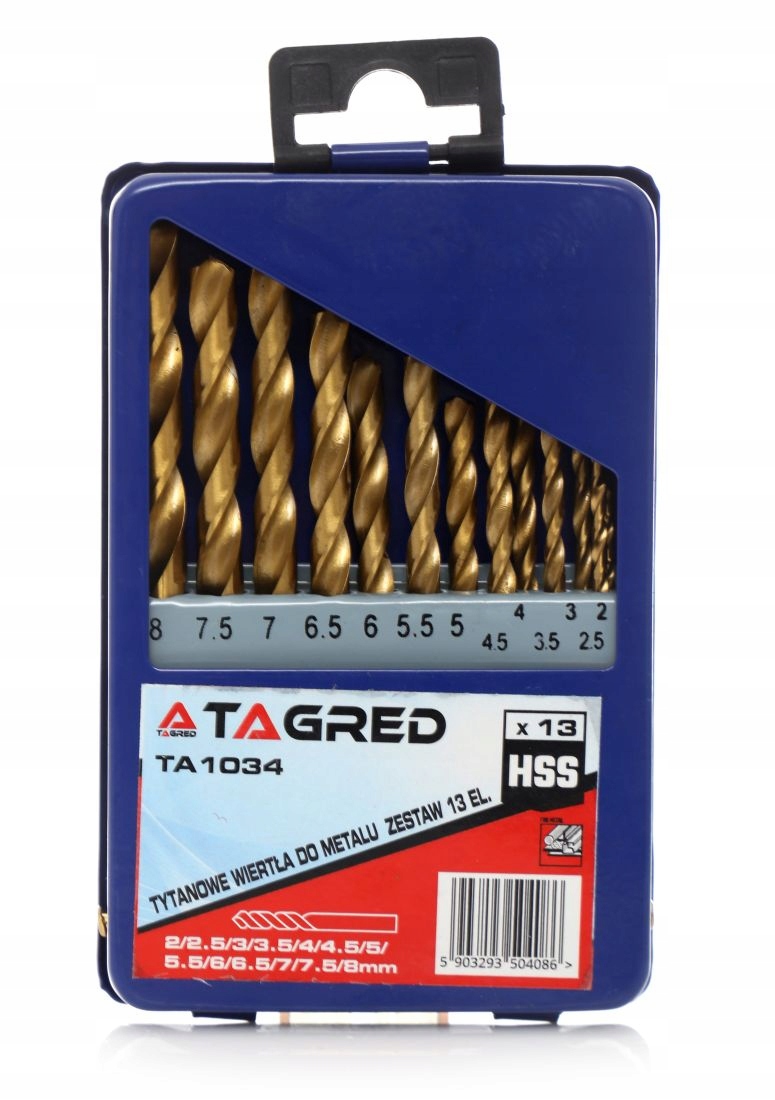 Свердла по металу 2,0-8,0 мм, 13 предметів, ТИТАНОВИЙ НАБОР