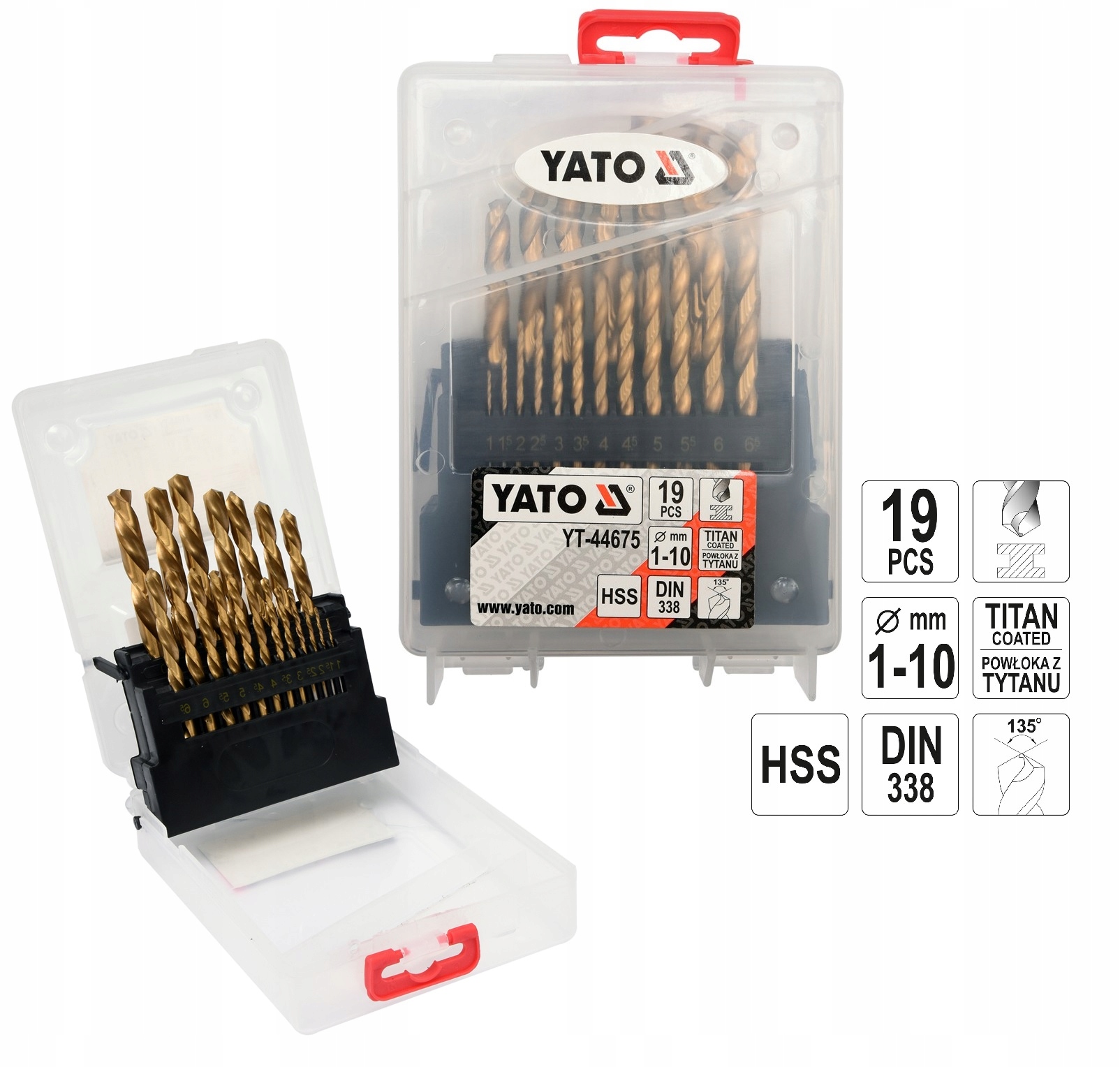 СВЕРДЛА ПО МЕТАЛУ HSS TYTAN 1-10ММ, КОМПЛЕКТ. 19 шт. YATO YT-44675