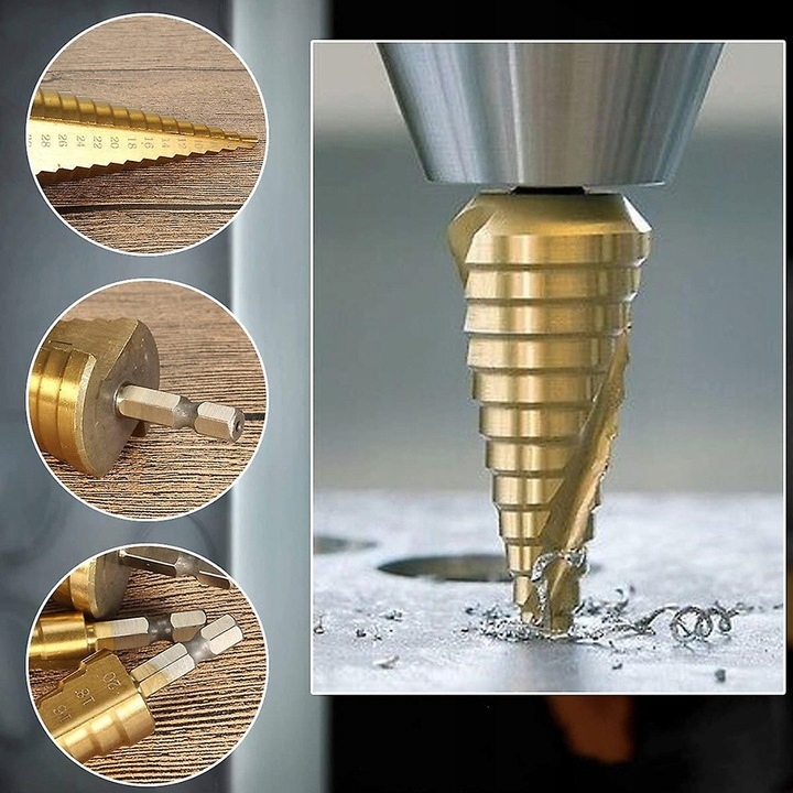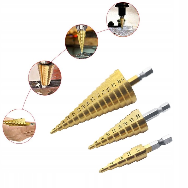 СВЕРДЛА СТУПІНЧАСТІ КОНІЧНІ ДЛЯ МЕТАЛУ ДЕРЕВА ЛИСТА ПЛАСТИКУ НАБІР 4-32 ММ