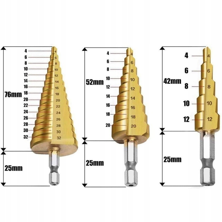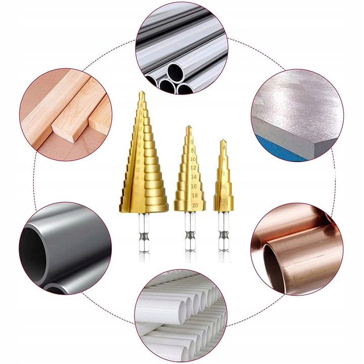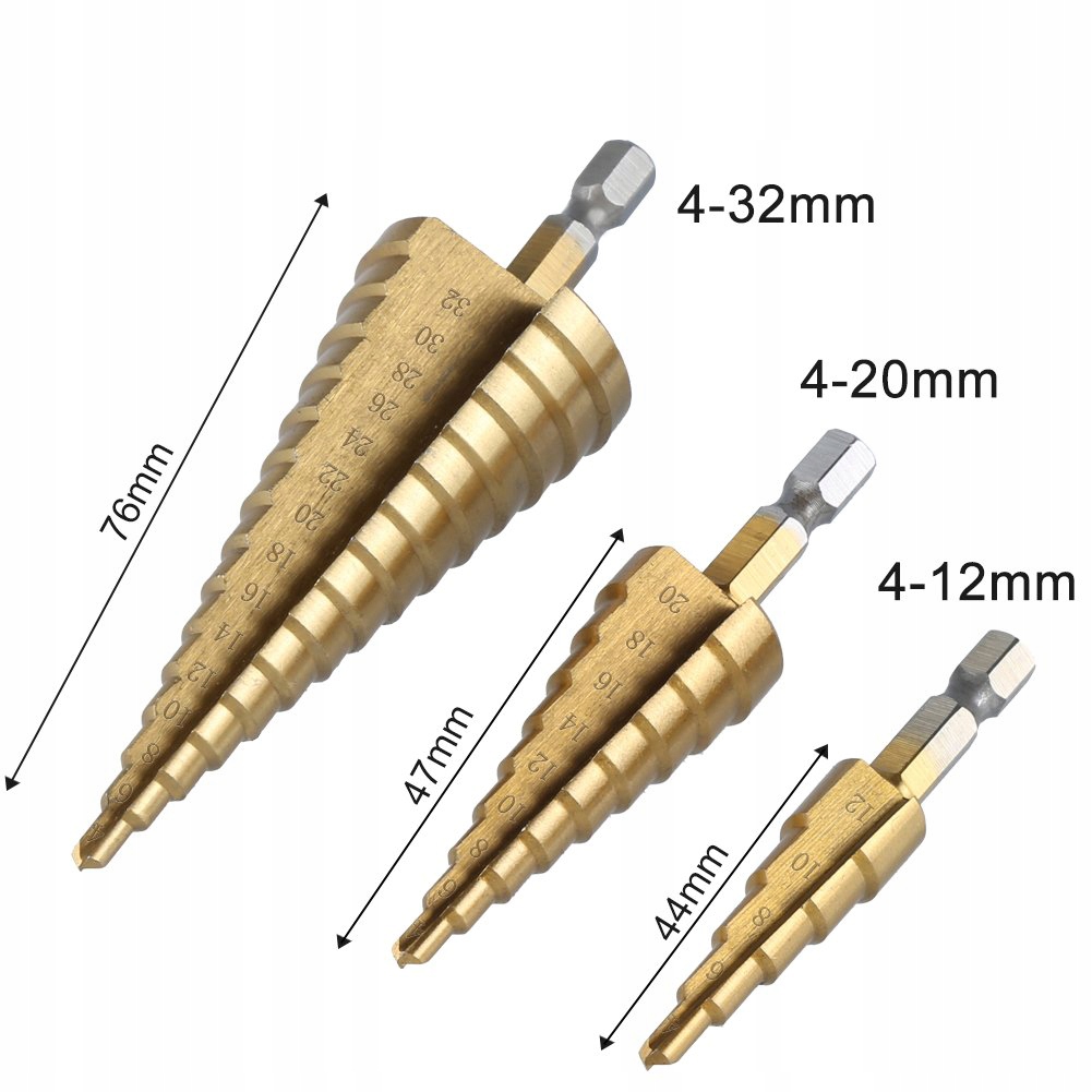 Представляємо вашій увазі унікальний набір з 3 ступінчастих конусних свердел по металу, які незамінні в слюсарній, листової та палітурній промисловості. Виготовлені з високоякісної швидкорізальної сталі HSS із титановим покриттям, ці свердла є чудовою інвестицією для професіоналів і ентузіастів DIY.
