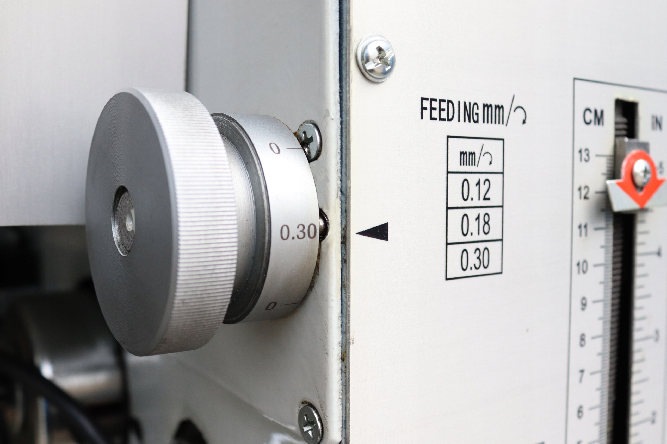 - Шпиндель автоматичної подачі – машина оснащена 3-ступеневою автоматичною подачею (0,12, 0,18, 0,30 мм/об), що забезпечує ефективне заправлення різьблення.