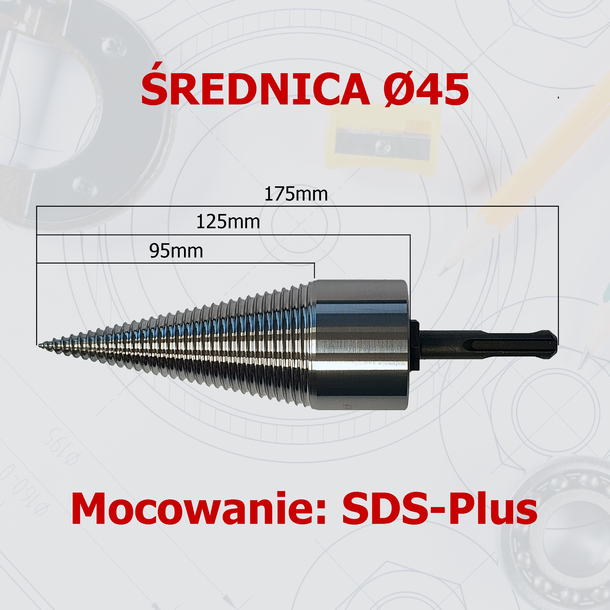 Свердло 45 мм для РОЗКОЛУВАННЯ ДЕРЕВ'ЯНИХ КОНУСНИХ ДРИЛЬ