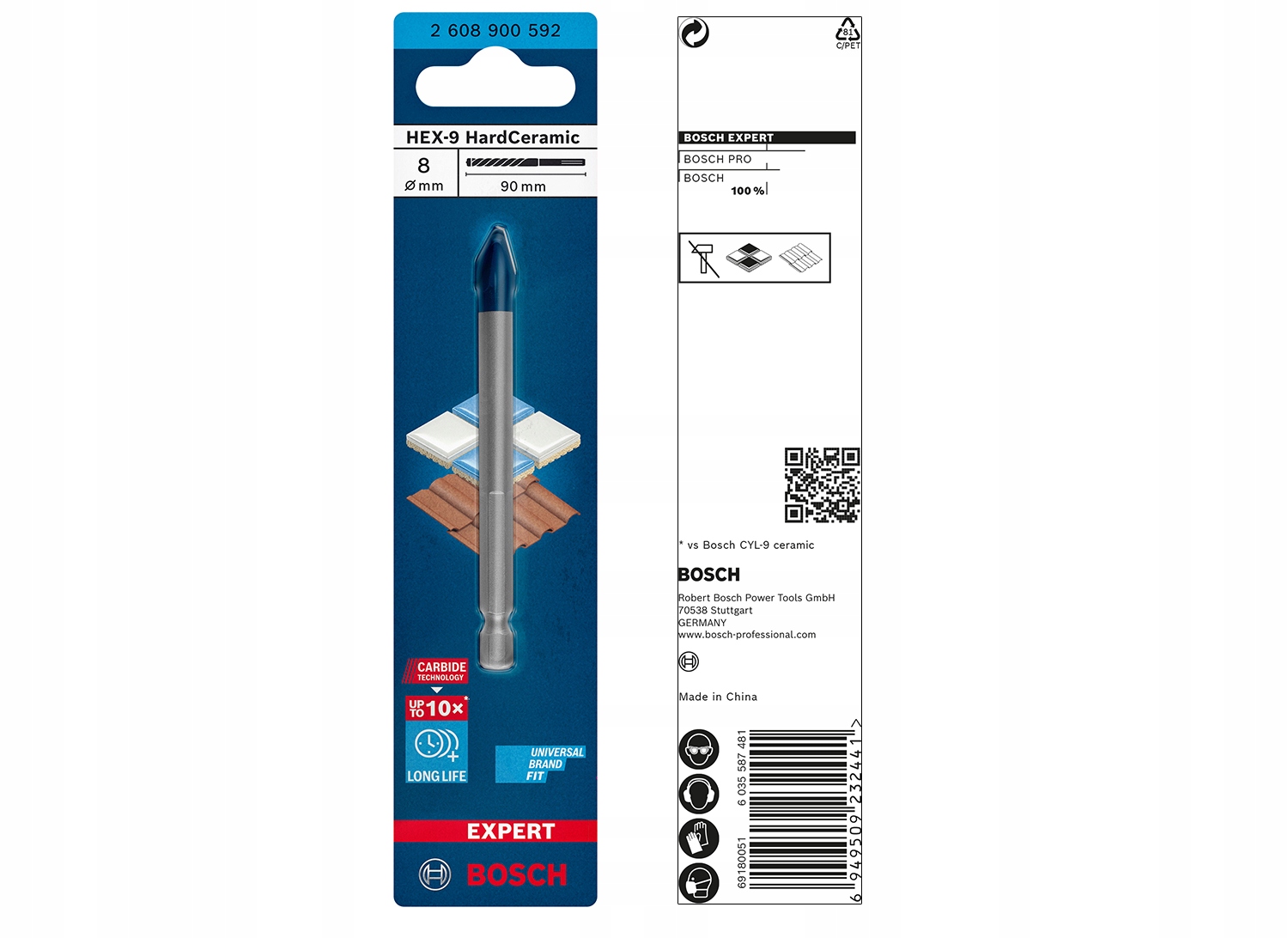 Оскільки настінна плитка стала більшою та твердішою, свердлити в ній отвори стає дуже складно для свердла. Ось чому компанія Bosch розробила свердло для кераміки EXPERT HardCeramic, яке дає змогу сухого свердління твердої кераміки та є набагато міцнішим, ніж наше еталонне свердло для плитки. Свердло для кераміки Bosch EXPERT HEX-9 HardCeramic призначене для свердління кераміки та може свердлити отвори в твердій плитці без зволоження чи охолодження.