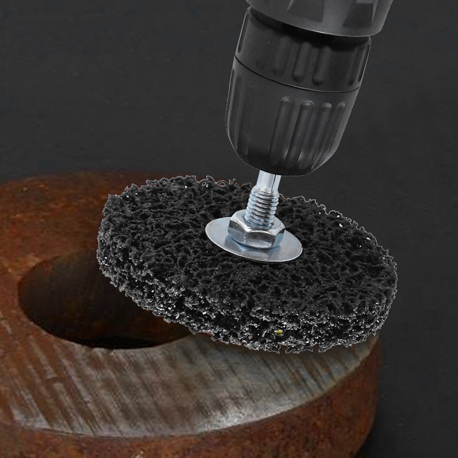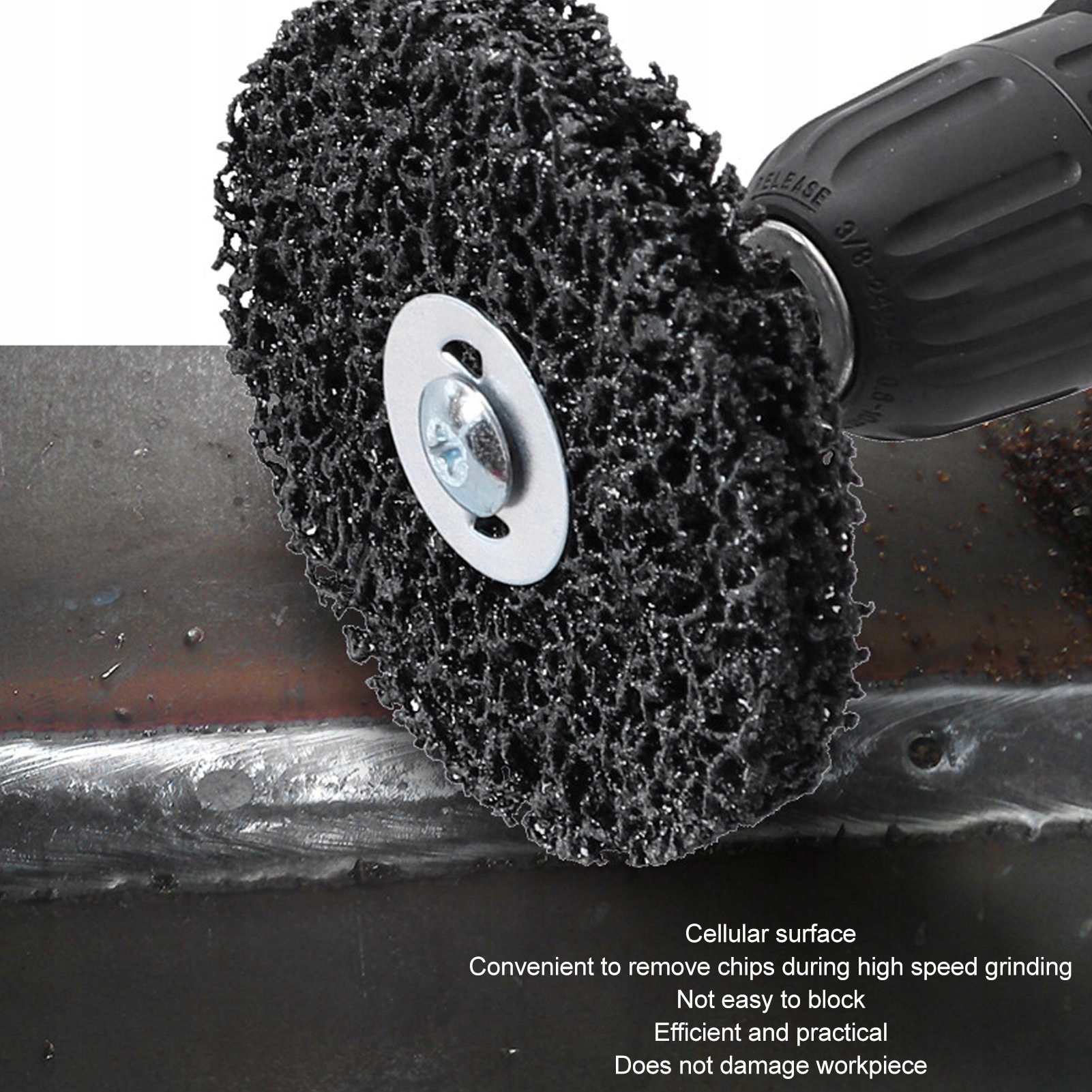 1, ЛЕГКО ЗНЯТИ: задня частина з різьбленням міцно пригвинчена до хвостовика, її можна швидко й легко замінити. 2, ЗНОСОСТІЙКИЙ МАТЕРІАЛ: чорний шліфувальний диск складається зі смоли корпус і наждачні зерна, з’єднані волоконно-оптичною дротяною сіткою, застосовуючи спеціальну технологію для високої міцності, надзвичайної зносостійкості, міцної води та масла, потовщеного шліфувального круга 3, ВИСОКА ЕФЕКТИВНІСТЬ БЕЗ БЛОКУВАННЯ: Поверхня стрічкового диска комірчаста, що робить легко видаляти стружку під час високошвидкісного шліфування і не легко зафіксувати, ефективний і практичний, не пошкоджує заготовку 4, ШИРОКЕ ЗАСТОСУВАННЯ: Диск для зачистки можна використовувати для шліфування нержавіючої сталі, шліфування алюмінію, видалення автомобільної фарби , видалення металевої іржі, полірування зварювальних поверхонь тощо. 5, ВІДМІННА ПРОДУКТИВНІСТЬ: Колесо для зачистки стрічкового колеса виконано з чудовою якістю виготовлення, має компактний вигляд і стабільну роботу, може забезпечити довговічність і стабільність