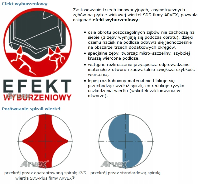 Значне підвищення стандарту щодо швидкості свердління та терміну служби свердла робить SDS -Plus від ARVEX® значно знижує вартість виготовлення одного отвору.