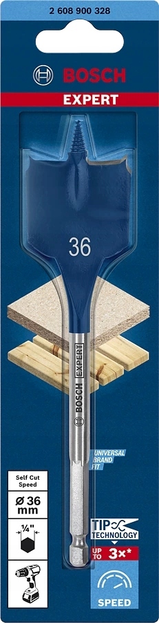 Плоске свердло Bosch EXPERT Self Cut Speed забезпечує ефективність і зручність для майстрів,яким потрібно свердлити отвори в м’якій деревині для електропроводка, дюбелі та інше обладнання.