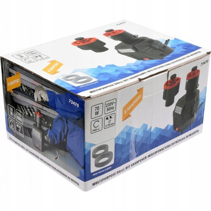 ЗАТОЧКА СВЕРДЛ + 2x ПЕРЕХОДНИКИ + 2x АБРАЗИВНИЙ ДИСК 3-16мм 70W 230V TOYA 73470