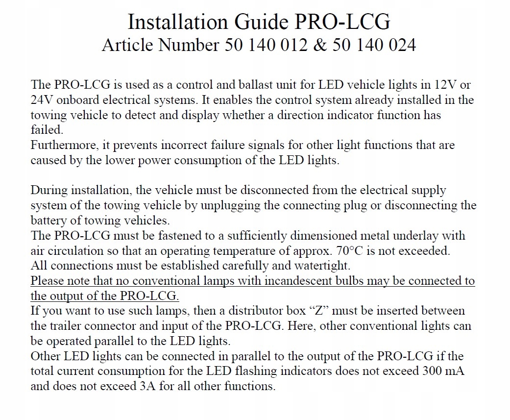 PRO-LCG використовується для моніторингу та навантаження напруги лампи в транспортних засобах з напругою 24 В.