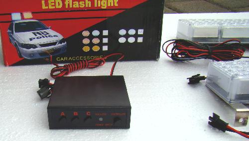 Контролер має вимикач живлення з індикатором і 3 кнопки A, B і C для вибору програми стробоскопа. Живлення 12В, струм споживання 4-6Вт.