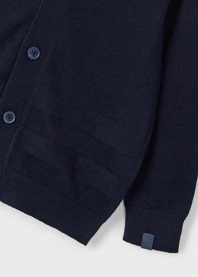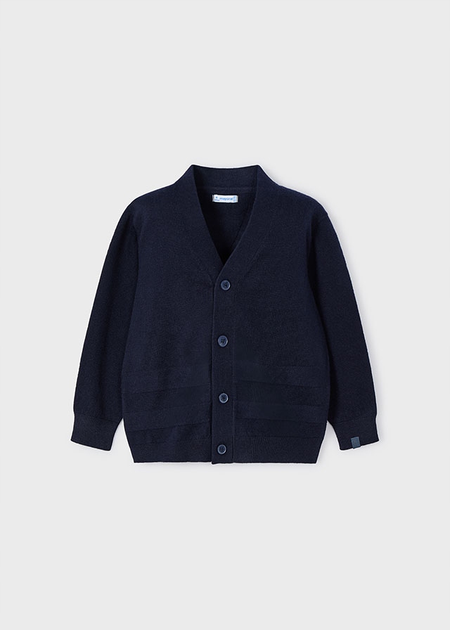 В'язаний светр з довгим рукавом для хлопчика. Модель з V-подібним вирізом. Застібка на кнопки. Ніжна та еластична бавовна. М'який і приємний матеріал. Гладка модель. Склад: 60% бавовна, 30% поліамід, 10% шерсть.