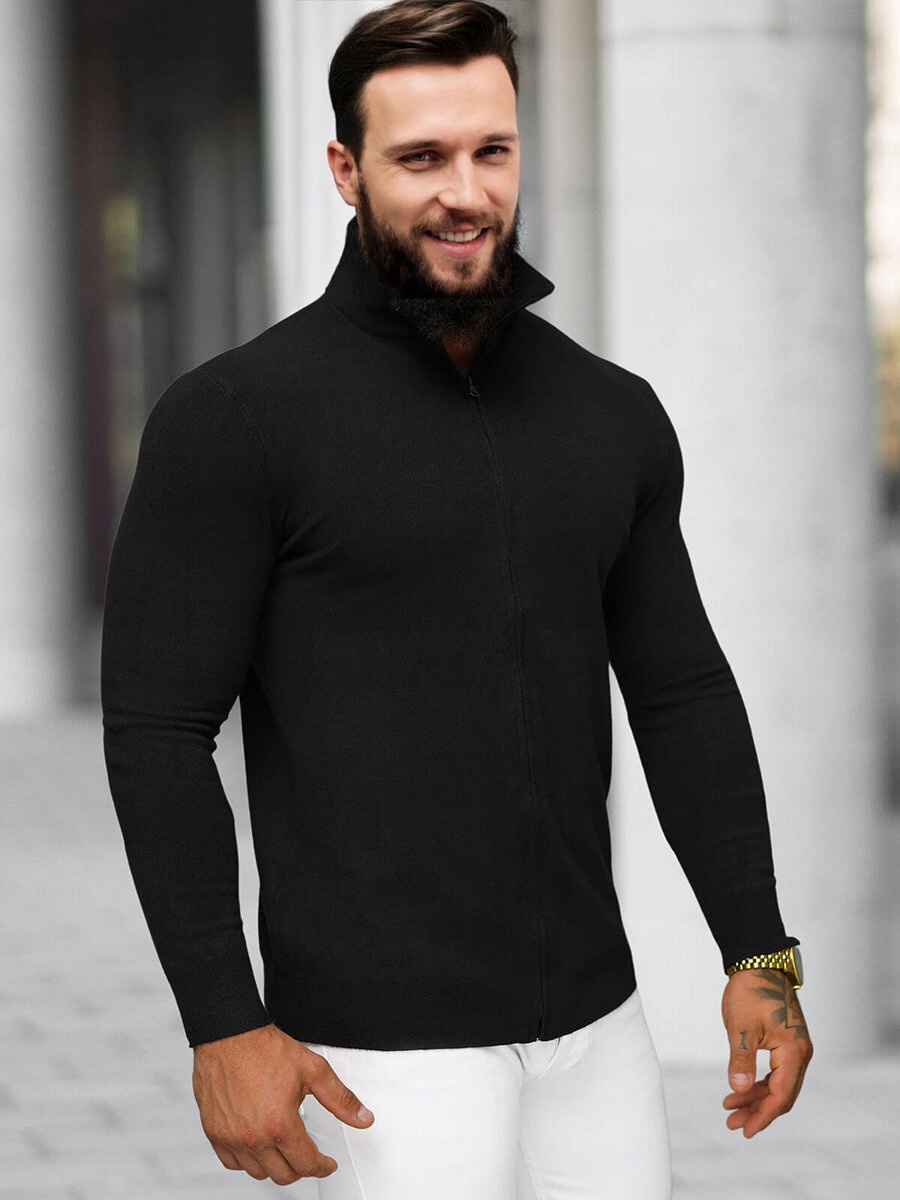 СВЕТРИК ЧОЛОВІЧИЙ ЧОРНИЙ - СВЕТР РОЗСТІБНИЙ - КОМІР НАПІВГОЛЬФ - ЗАМОК