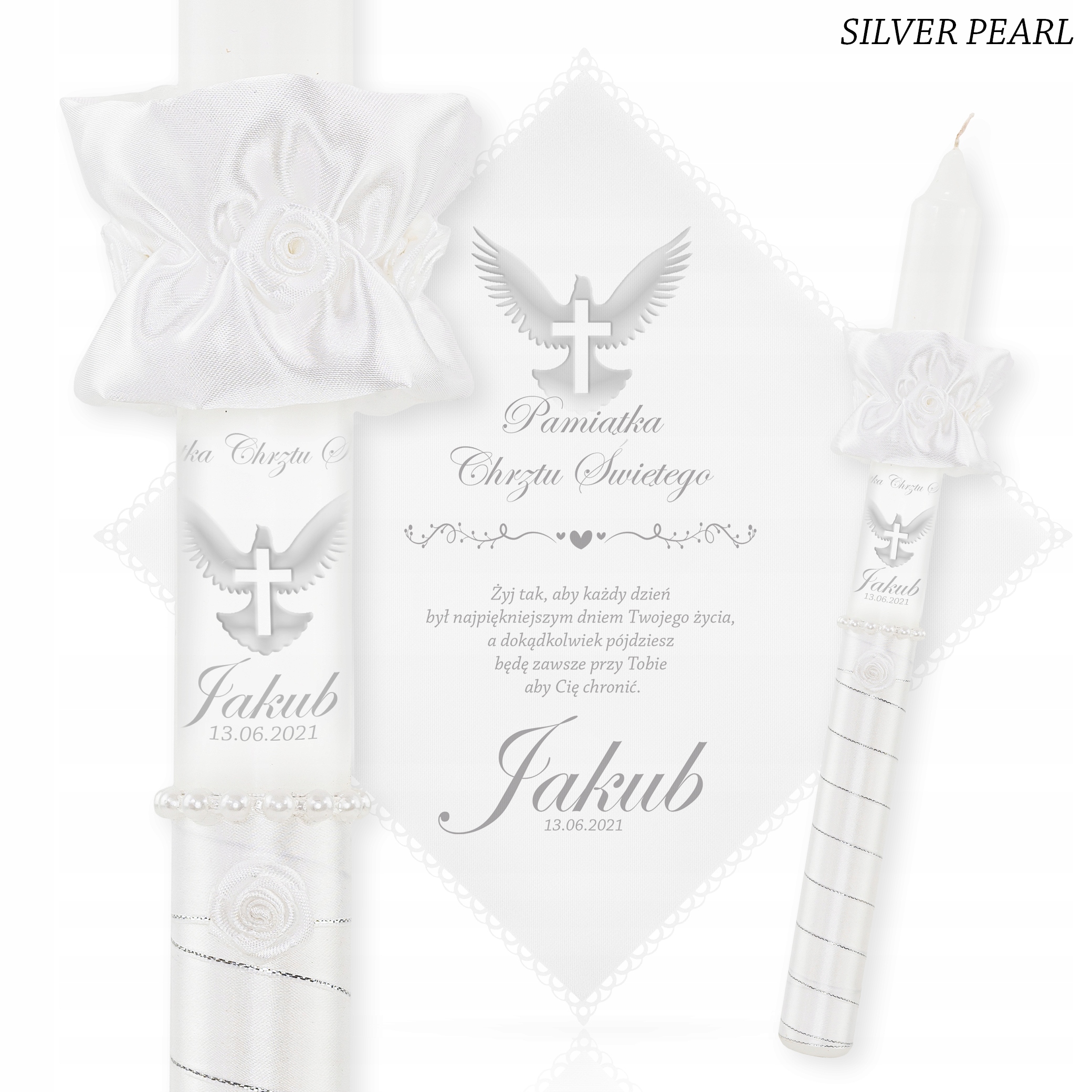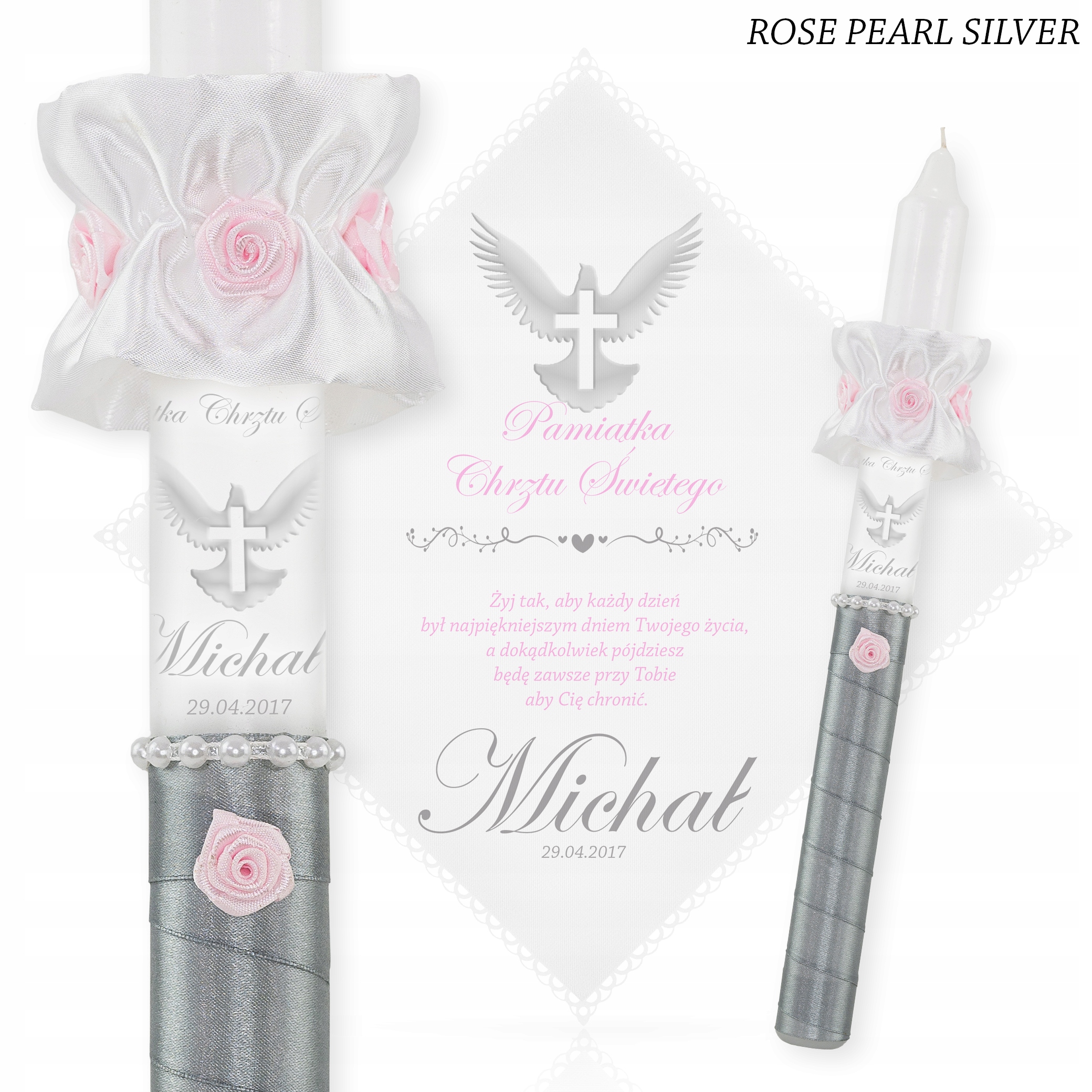 Подарунок у виглядібілої ризи на хрещення та свічка - це перші подарунки для дитини від хрещених батьків. Прекрасний мотив ніжного мереживного візерунка навколо халата ідеально відповідає імені та присвяті дитини.