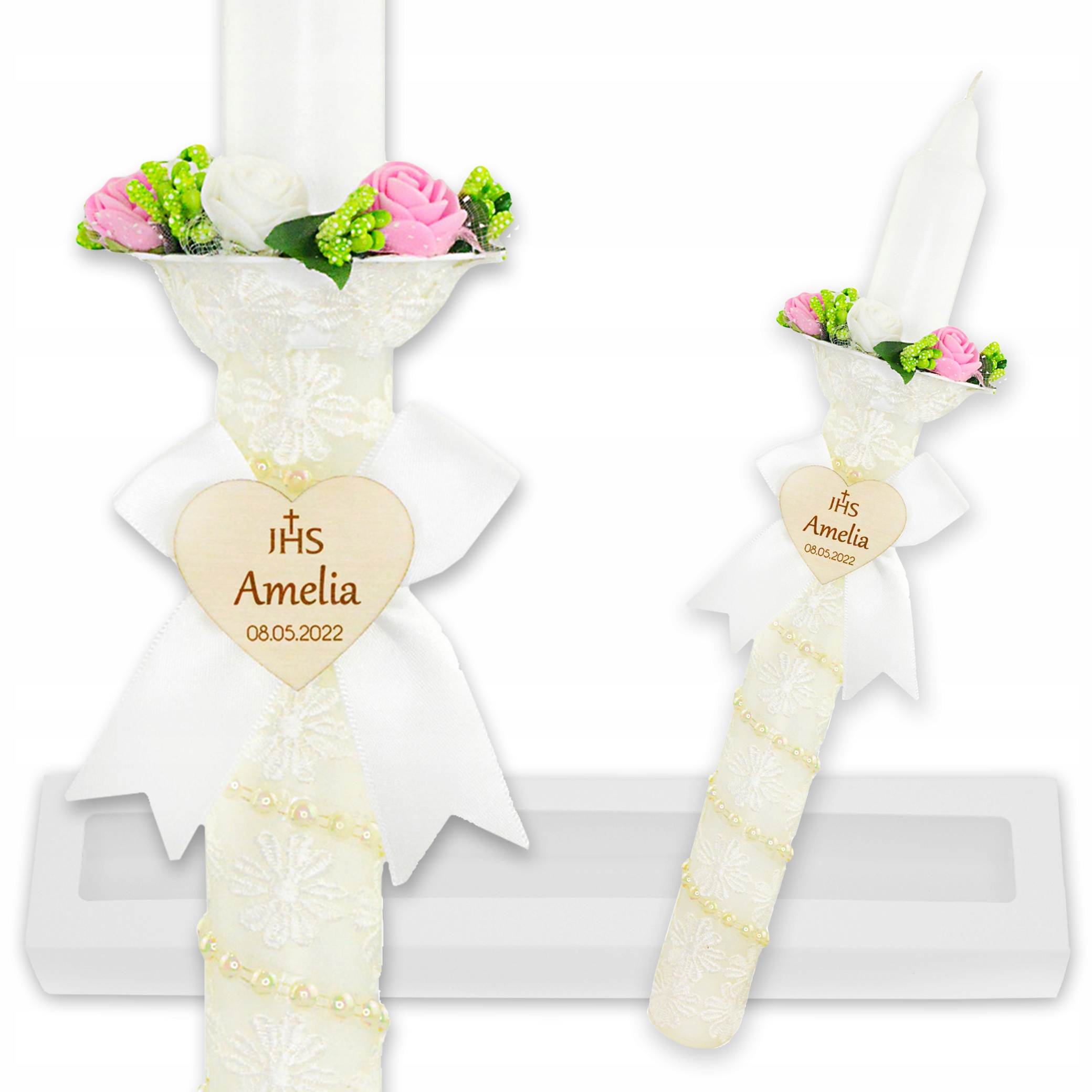 ЕЛЕГАНТНА СВІЧКА ДЛЯ ПРИЧАСТЯ ВРУЧНОГО ДЕКОРАЦІЇ З ІМЕНЕМ ТА ДАТОЮ ДИТИНИ ТА ГАРНО ДЕКОРИРОВАНА КРИШКА ДЛЯ СТОПАННЯ