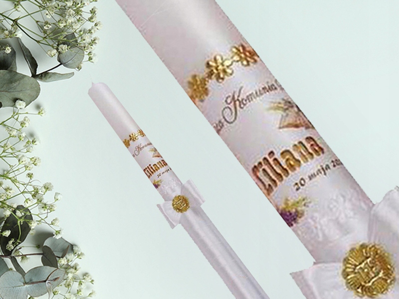 Пропоновані нами свічки для Першого Святого Причастя готуються вручну та декоруються в нашій майстерні. З почуттям стилю ми дбаємо про кожен елемент, а використовувані продукти мають найвищу якість.
