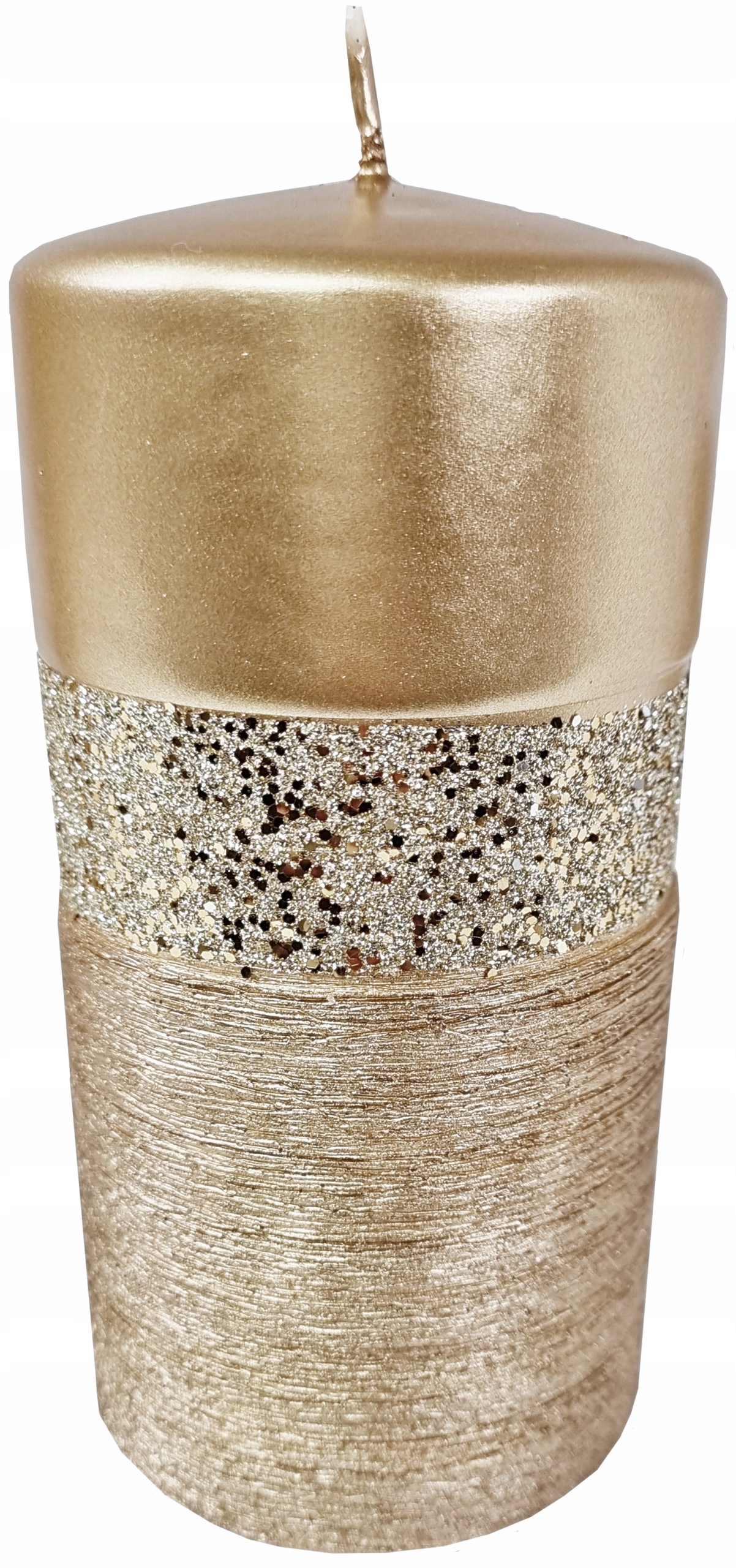 Декоративна свічка з додаванням блиску, що надає їй сучасності та елегантності вигляд.