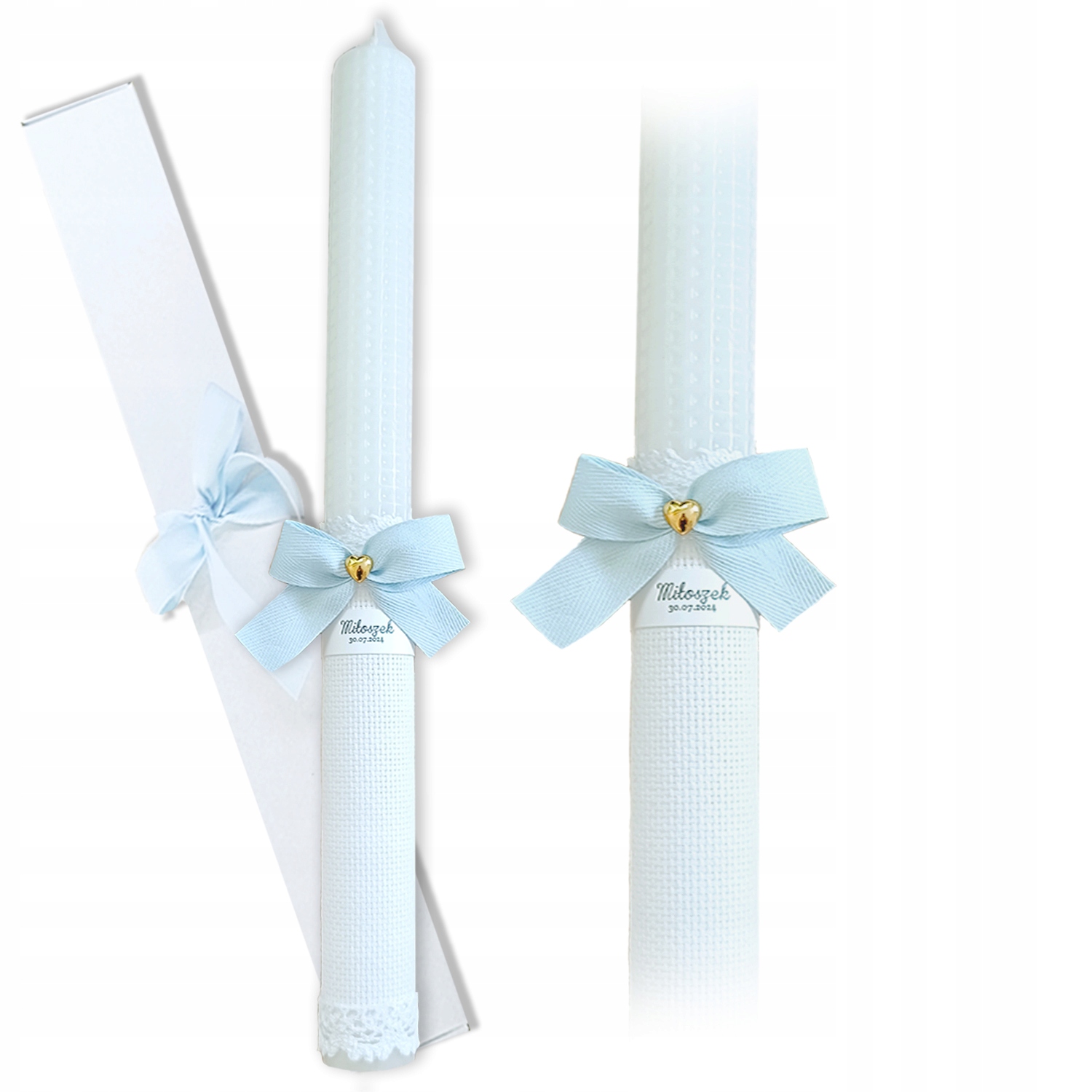СВІЧКА ДЛЯ ХРЕЩЕННЯ + КОРОБКА І КАПЕЛЬНИЦЯ РУКА Персоналізація КОЛЬОРИ
