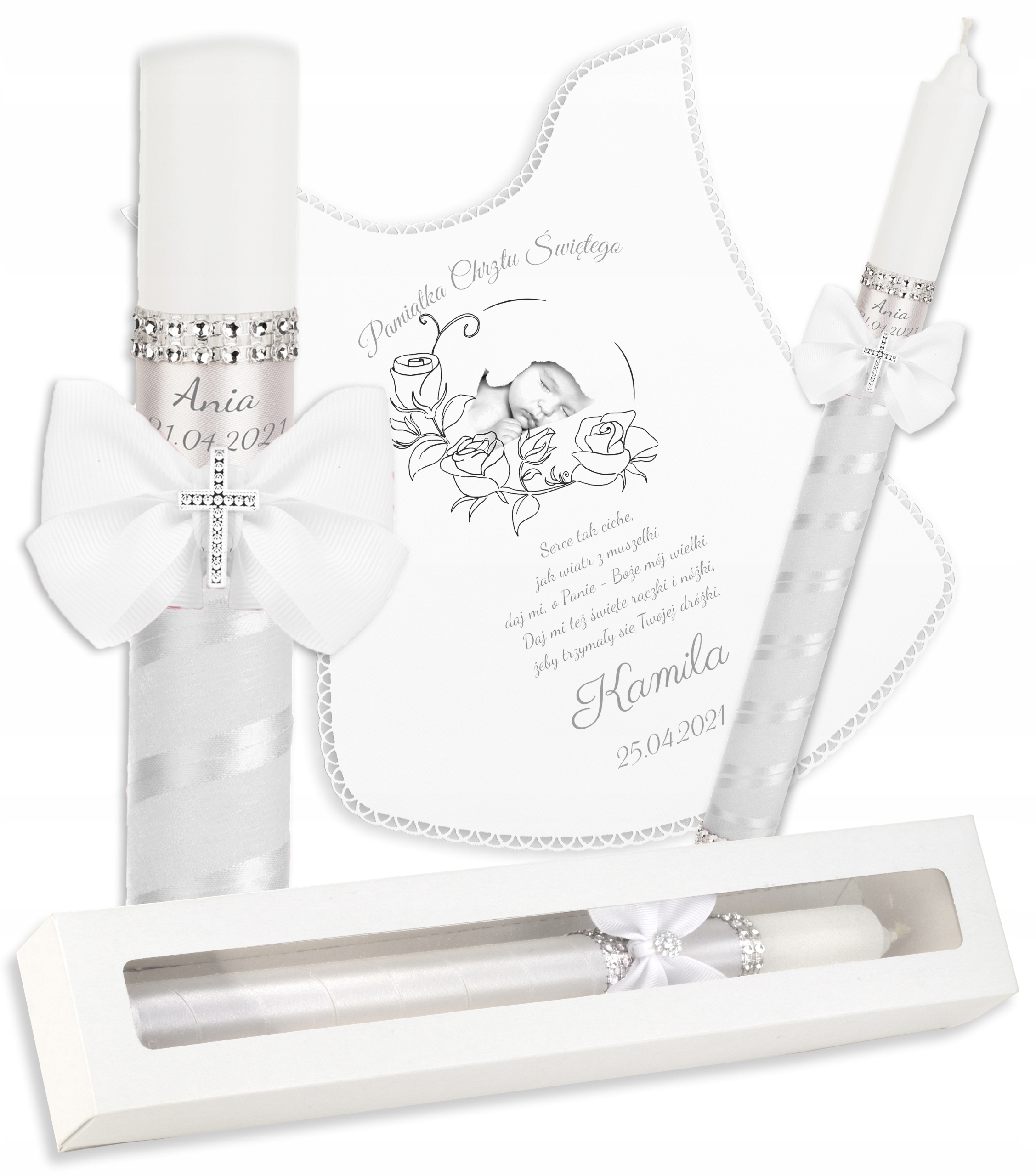 Заохочуємо вас придбати свічку та тканину з колекції SANTI . Цей персоналізований набір ідеально підійде для святкування Хрещення. З одного боку, він відповідає вимогам нашої традиції - він необхідний під час Хрещення на інше - завдяки ретельній роботі - є прикрасою торжества.