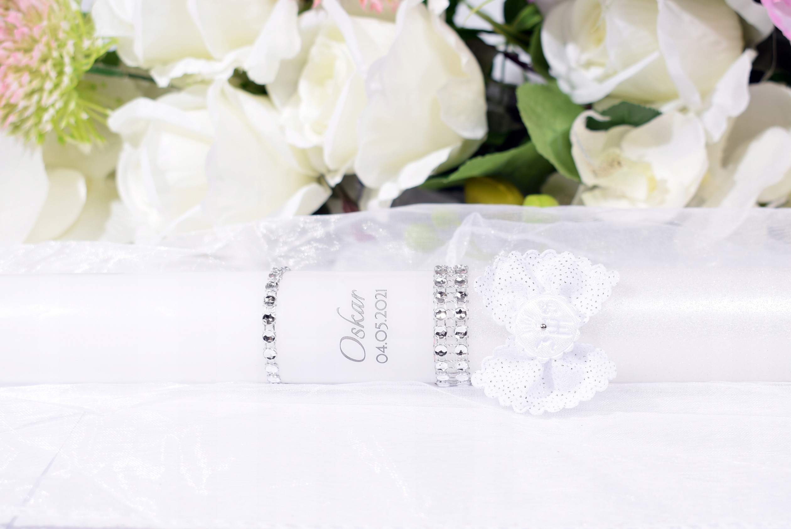 Ми надаємо красиву настільну свічку безкоштовно. Свічка є ідеальним доповненням, яке можна поставити на столи під час прийому після церемонії. Це створить чудову атмосферу в цей важливий день у житті нашого юного християнина.